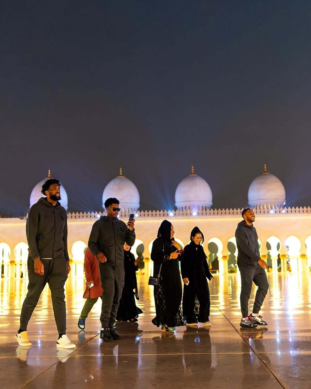 到此一游!分享昨日费城76人众将游览阿布扎比地标建筑“谢赫扎耶德大清真寺”时的现