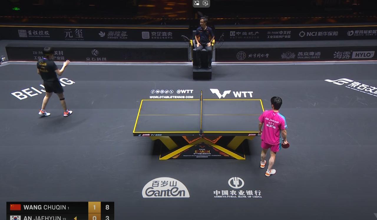 王楚钦前排坐的朋友都是谁? 这次又换了一批, 都是帅哥, 当然我一个也不认识, 是打篮球的吗? 这次中国大满贯, 头哥压力很大, 表情很凝重。 今晚对战安宰贤也不好打, 两人第一局就打成了9:9 好在,头哥关键球处理得好, 11:9拿下 第二局 大头瑶瑶领先, 赢定了