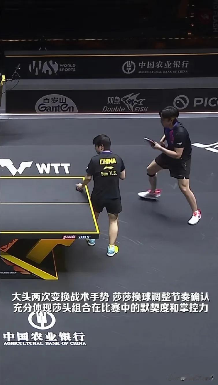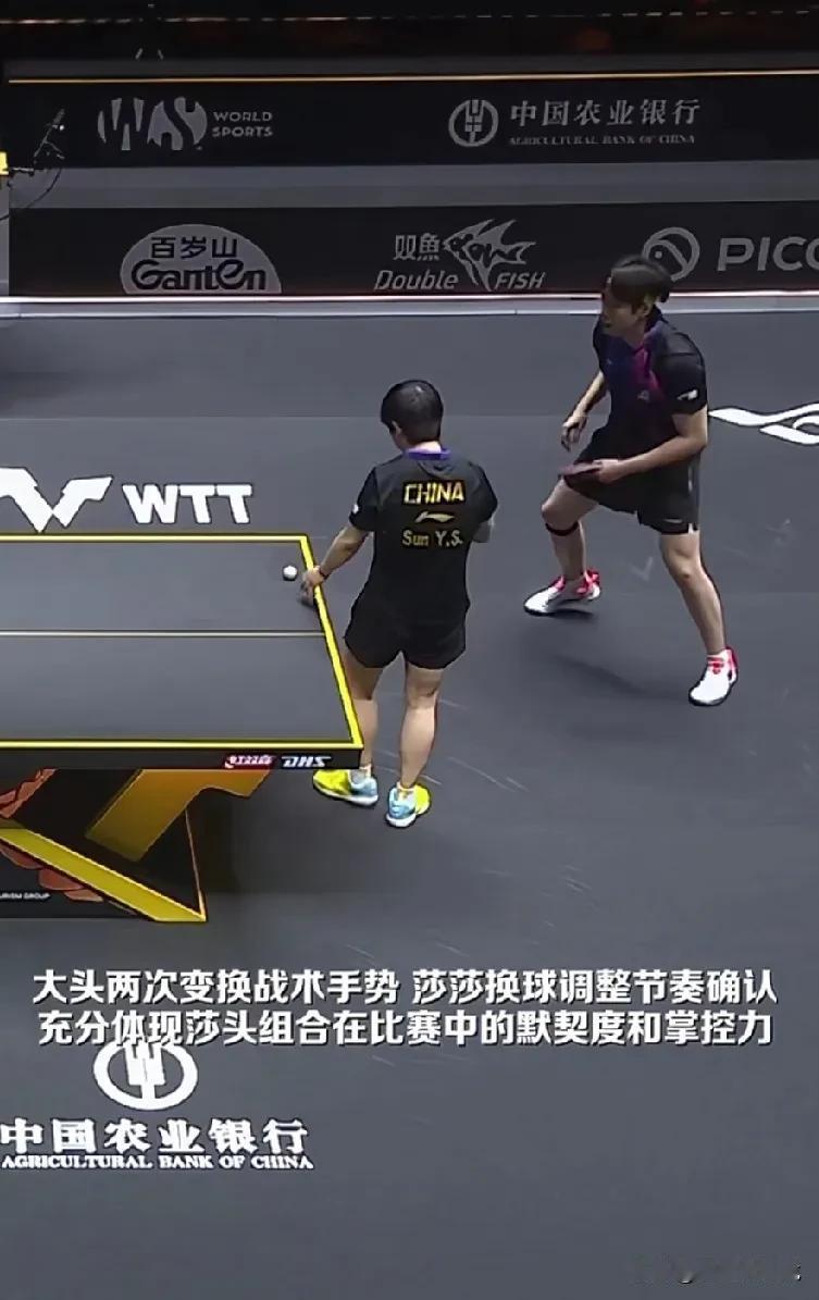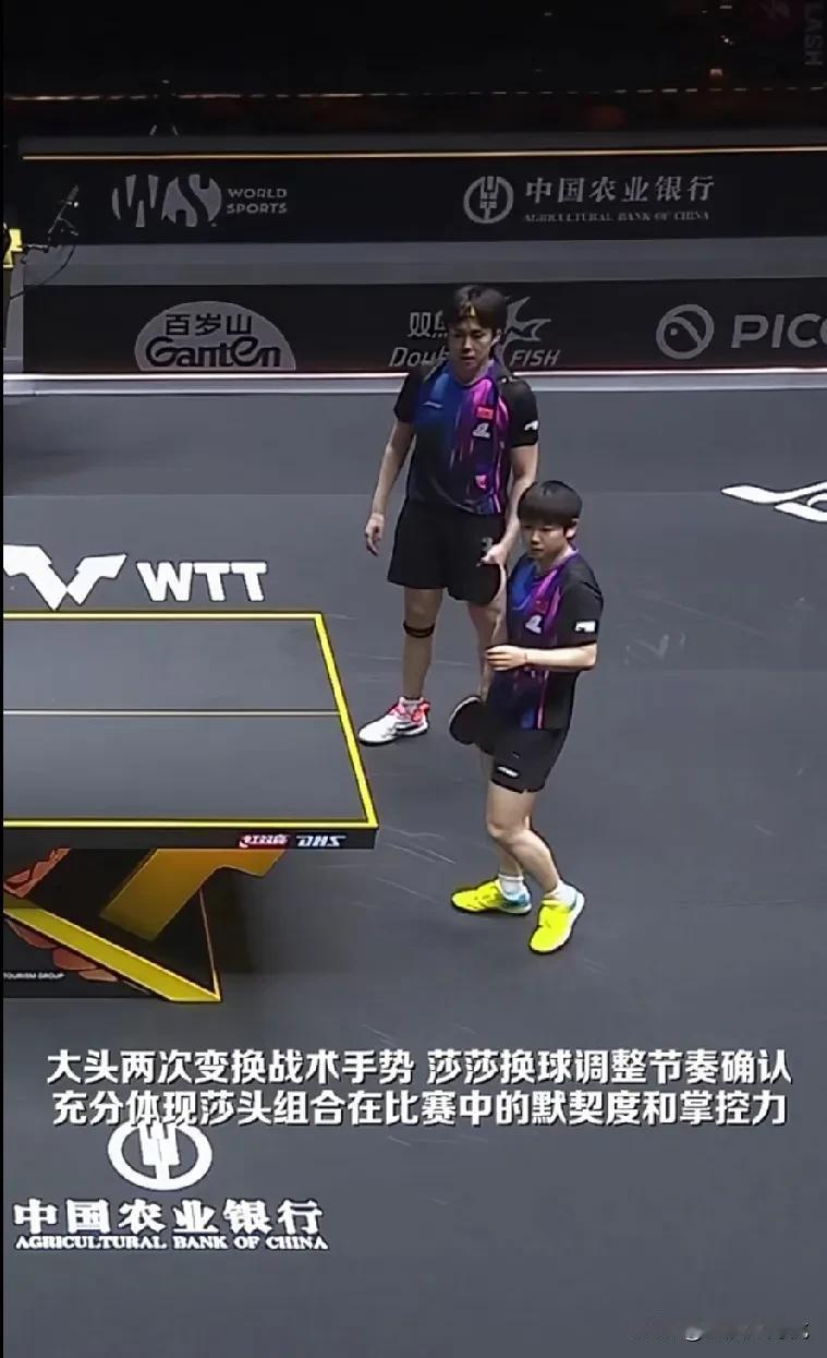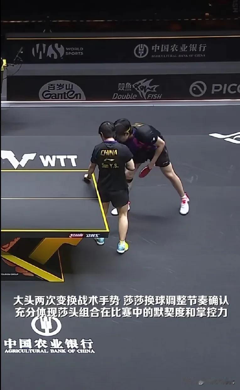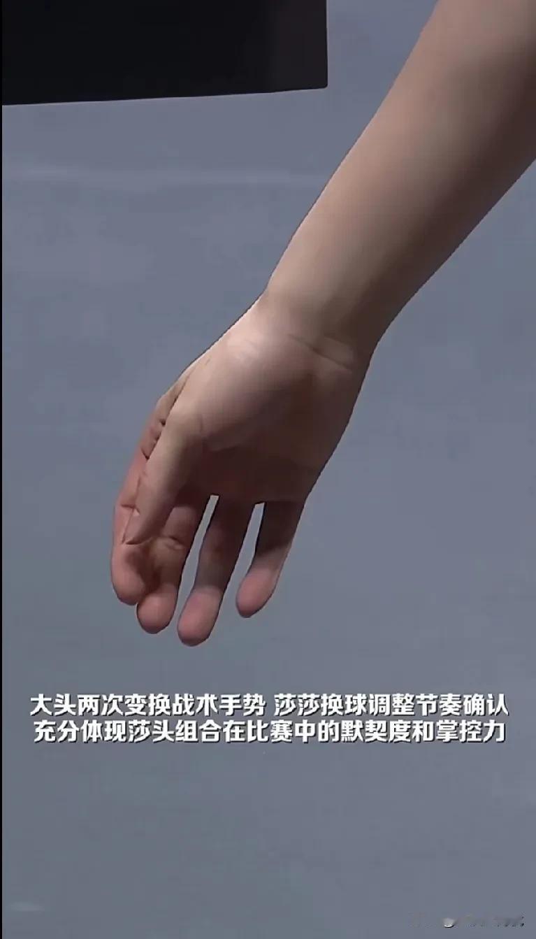 你就说说吧,莎莎和大头的默契度有多强吧? 就在昨天双打比赛时,大头给了莎莎两个手势, (这两个手势的意思一个是转的意思,然而另一个是不转的意思) 这时候给莎莎也搞懵了,莎莎也不知道到底用哪一个,到底是转啊,还是不转。 这时候莎莎灵机一转就把球打了出去,重新换球, 有网友说,大头给莎莎了两个战术,第一个手势是不转,第二个手势是转的意思,大头在两个手势之间有点犹豫,莎莎就利用换球的时间给大头理清一下思路,到底是转还是不转,最后确定发第一个不转,然后发球直接得分,最后三比零拿下比,在这就是默契 其实大头给了莎莎两个手势,他自己也不确定用哪一个, 莎莎看出大头的窘迫和犹豫不决,所以当机立断把球给换了, 你就说莎莎心眼子多不多吧, 也怪不得大家都称她做800个心眼子[呲牙]