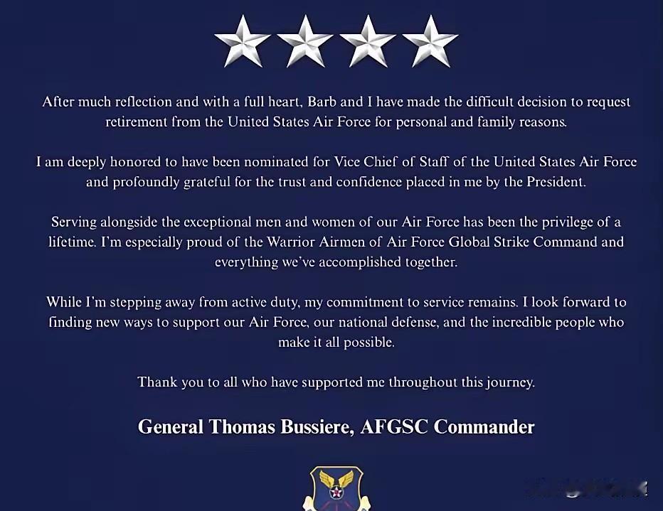 大美利坚的烽火戏八百诸侯终于出奇迹了:美空军一名四星上将不堪受辱,在网络平台发帖直接宣布辞职,大美利坚舆论大哔。。。 美国空军出了个大事,一个有实权的四星上将,不是那种空有头衔的虚职,直接在网上发帖说辞职了。 原因就是受不了气,觉得被羞辱了。这事儿一出来,美国舆论立马炸了锅,到处都在说这事儿。 有人调侃,这位上将辞职帖子里该加上几句,说自己身高1米88,体重80公斤,没络腮胡、没长头发、没纹身。为啥这么说?之前美国防长对将领们管得宽,连身材、发型都要管,跟管小孩似的。 其实特朗普估计正乐意看到这结果,这本来就是他想看到的。你不主动走,他也会想办法赶你走。 有网友说,还有人猜,这事儿不只是受辱那么简单。 上次美军配合以色列轰炸卡塔尔,说不定就是这位上将私下指挥协调的,这可是犯了大忌。 笔者认为,本来是美国政府想靠着强硬态度压着军方,结果把实权军头逼得直接辞职,这下可好,不仅军方内部乱了阵脚,外面舆论也吵翻了天,不知道接下来还会闹出啥动静。 对此,你怎么看呢?