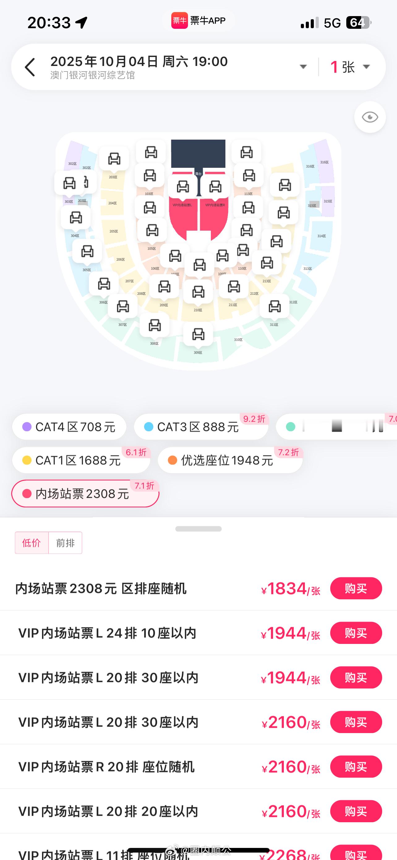 鹿晗 10.4 澳门演唱会打折 ing