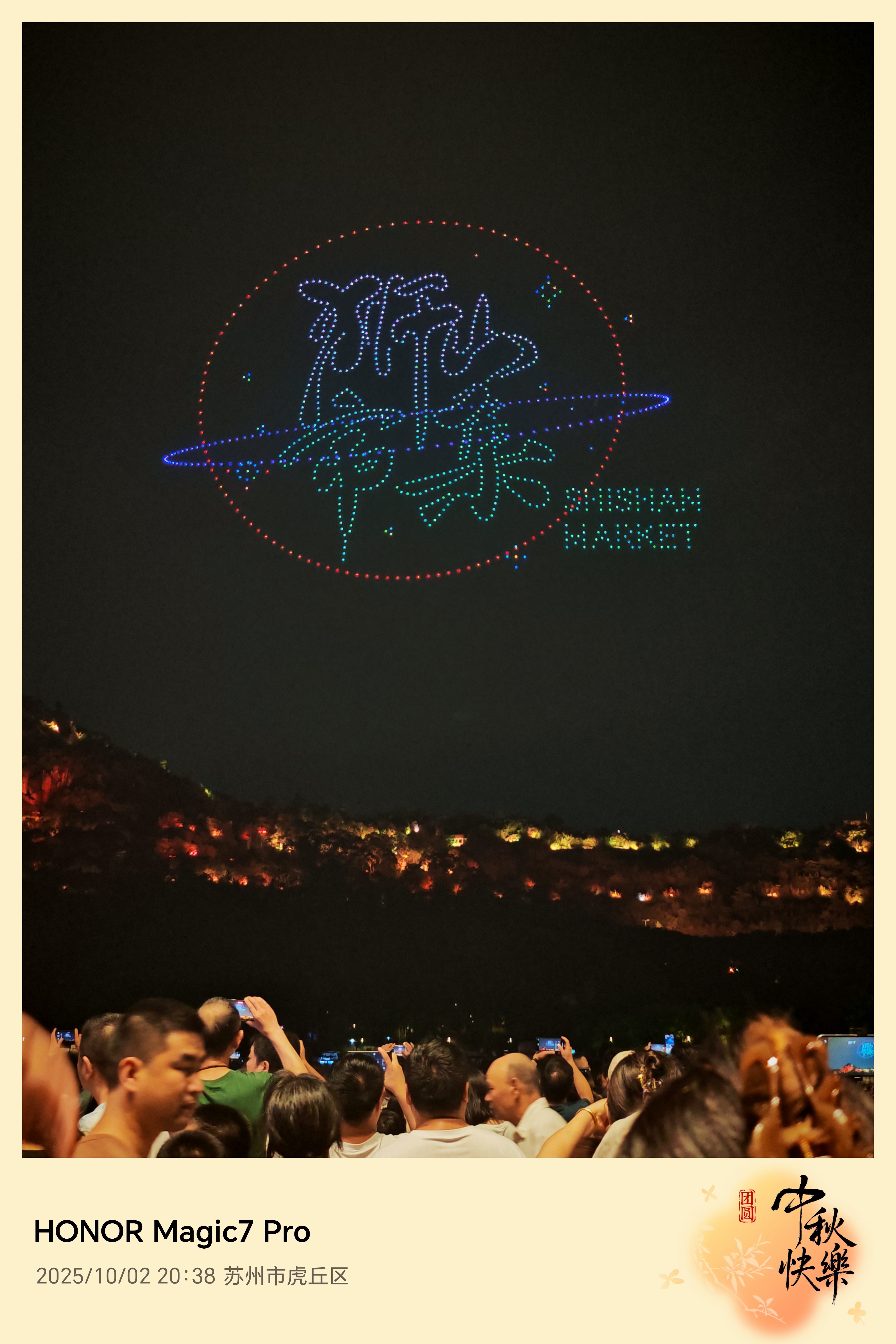 没出去玩就真的不累吗?同城逛逛也是人挤人的好么!凑巧赶上狮山市集的无人机表演,荣耀Magic7 Pro不能闲着,照片动图必须安排……