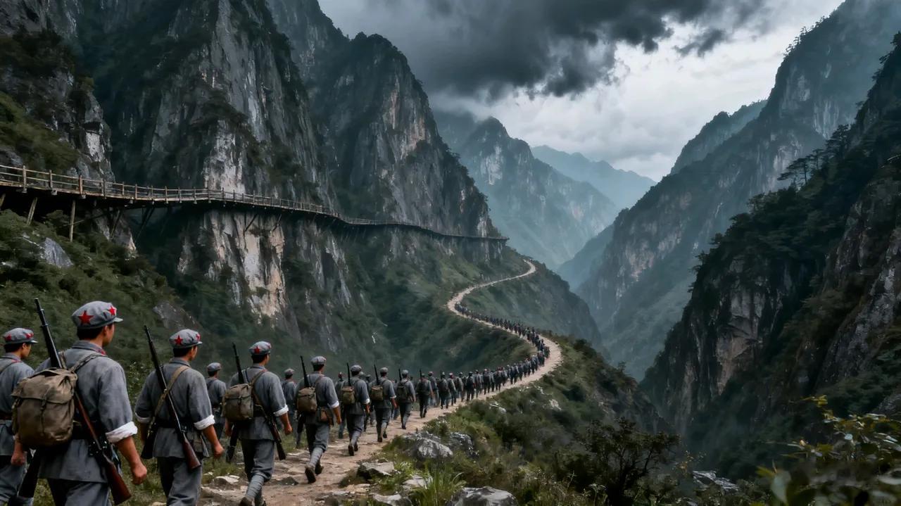 我最喜欢的毛主席诗歌, 𣎴是《忆秦娥·娄山关》《念奴娇·昆仑》 竟是它……。 正是毛泽东主席最脍炙人口壮丽诗篇 ——《七律·长征》。 红军不怕远征难,万水千山只等闲。 五岭逶迤腾细浪,乌蒙磅礴走泥丸。 金沙水拍云崖暖,大渡桥横铁索寒。 更喜岷山千里雪,三军过后尽开颜。 这首诗是毛泽东在1935年10月, 率领中央红军越过岷山, 长征即将胜利结束时所作。 全诗以磅礴的气势、 高度的艺术概括力, 再现了长征这一人类历史上伟大奇迹。 豪情铸史诗,伟力照千秋。 每每读起毛泽东主席的《七律·长征》,总觉一股磅礴之气自胸中激荡而起。 这短短五十六个字, 犹如一部浓缩的史诗, 将人类精神所能抵达的高度, 淋漓尽致地展现于笔端。 你可曾细品"万水千山只等闲"里的那份从容?二万五千里征途,六百余次战役,平均每三天就有一场激战,每三百米就有一位战士牺牲。这般艰难险阻,在诗人笔下却化作等闲之事。何等气魄! 看着五岭山脉在诗中化作"细浪",乌蒙山变成"泥丸",忽然懂得什么叫革命乐观主义。现实里战士们草鞋踏破,雪水充饥,诗句中却满是笑对艰险的豪情。这种精神力量,至今仍在激励着我们。 "金沙水拍云崖暖"七个字里藏着多少智慧?1935年5月,红军用七条破船在皎平渡奋战七天七夜,不费一枪一弹渡过天险。这"暖"字既写春江水暖,更写将士们智取金沙后的心头温热。 大渡河上的铁索至今泛着寒光。那场飞夺泸定桥的战役,二十二位勇士冒着枪林弹雨攀爬铁链,为大军杀出血路。诗中一个"寒"字,道尽了多少惊心动魄的往事。 最动人的莫过于"三军过后尽开颜"。跨越皑皑雪山,穿过茫茫草地,当终于望见陕北根据地时,那些黝黑面庞上绽放的笑容,该是怎样动人的景象!这"开颜"背后,是九死一生的涅槃重生。 今日重读这首诗,依然能感受到那份穿越时空的精神力量。新时代的长征路上,或许不再有枪林弹雨,但同样需要这种"只等闲"的气度。每一次科技攻关,每一回脱贫攻坚,何尝不是新的长征? 站在红军长征出发90周年的历史节点,这首诗更像一座精神灯塔。它提醒我们:任何时候都要保持"腾细浪"的从容,"走泥丸"的笃定。这种精神,已经融入中华民族的血脉。 各位读者你们怎么看?欢迎在评论区讨论。