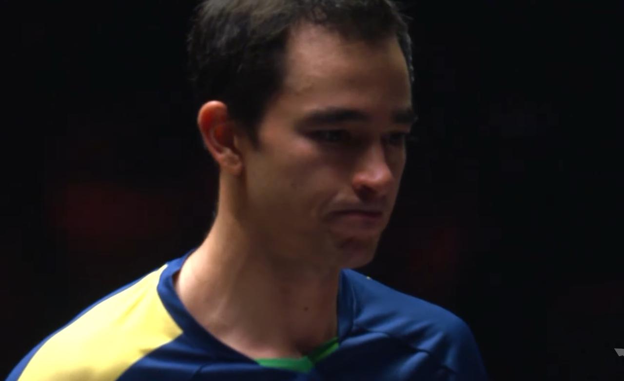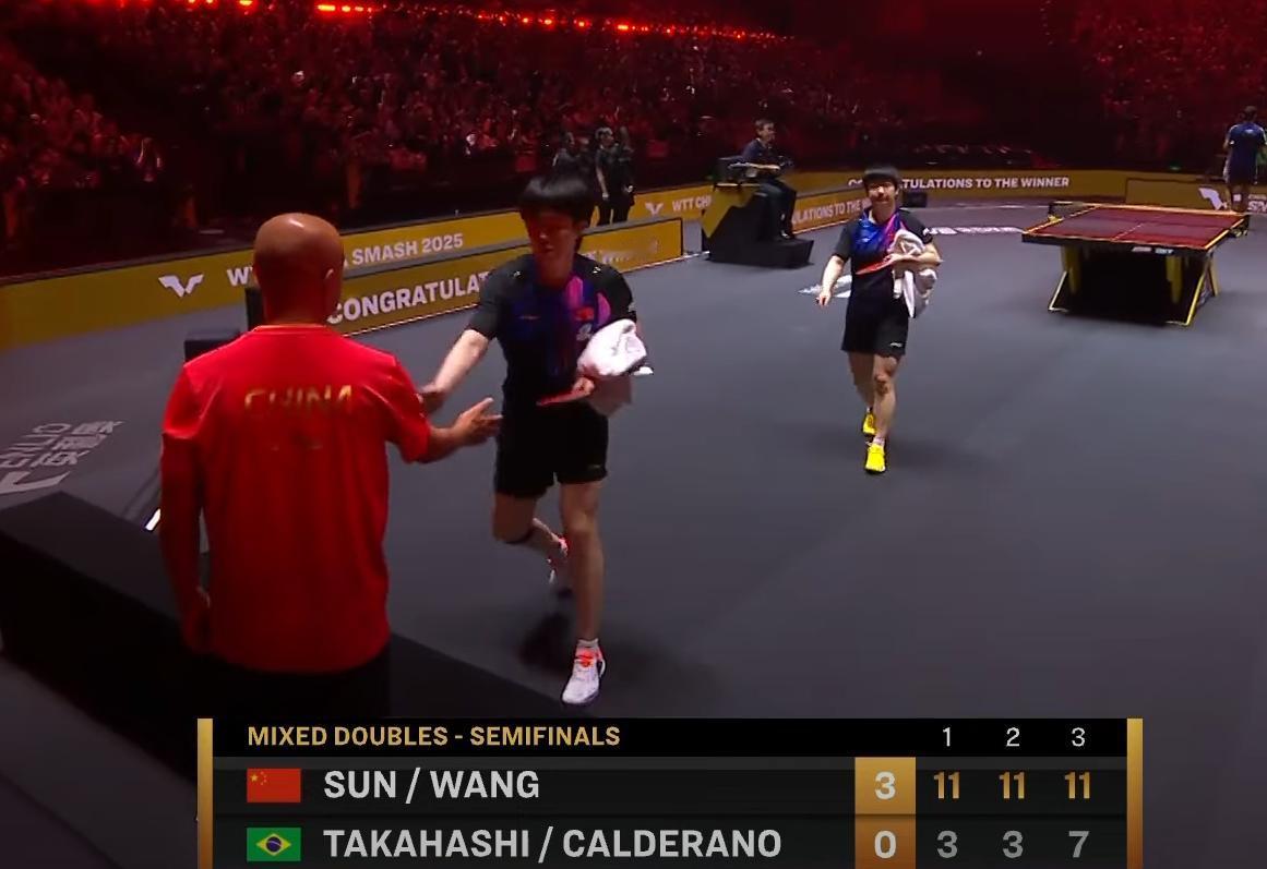 我去!孙颖莎把雨果打哭了, 雨果一个正手大力抽, 一般男选手都接不住, 莎莎反拉了。 雨果崩溃了, 眼里蓄满了泪水! 雨果单打没问题, 和高桥一起, 带着他都不会打球了。 第一局 莎头轻松的11:3胜了, 第二局 雨果打急了, 失误频频, 莎头还是11:3拿下 第三局 巴西队4:1领先, 结果莎头立马追平, 最终11:7拿下