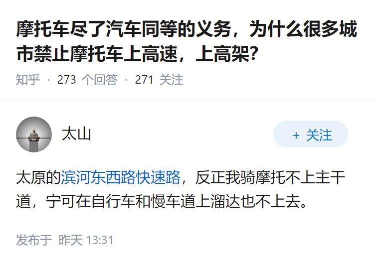 摩托车尽了汽车同等的义务,为什么很多城市禁止摩托车上高速,上高架?