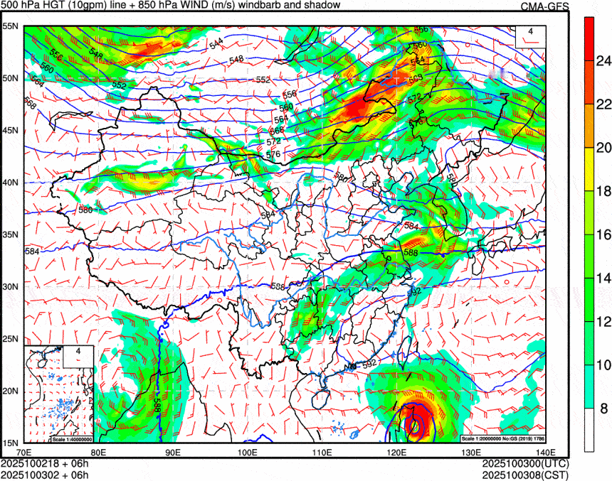 【降雨】昨天到今晨,主雨带在副高北侧,四川东北部到江苏山东一带。江苏连云港等地出现观测史最晚的大暴雨,并伴有短时强降雨。另外海南云南浙江上海等地因为暖区对流,也有分散的短时强降雨。今天副高北侧的切变线有所南压,低涡东移出海。降雨总体减弱南压。