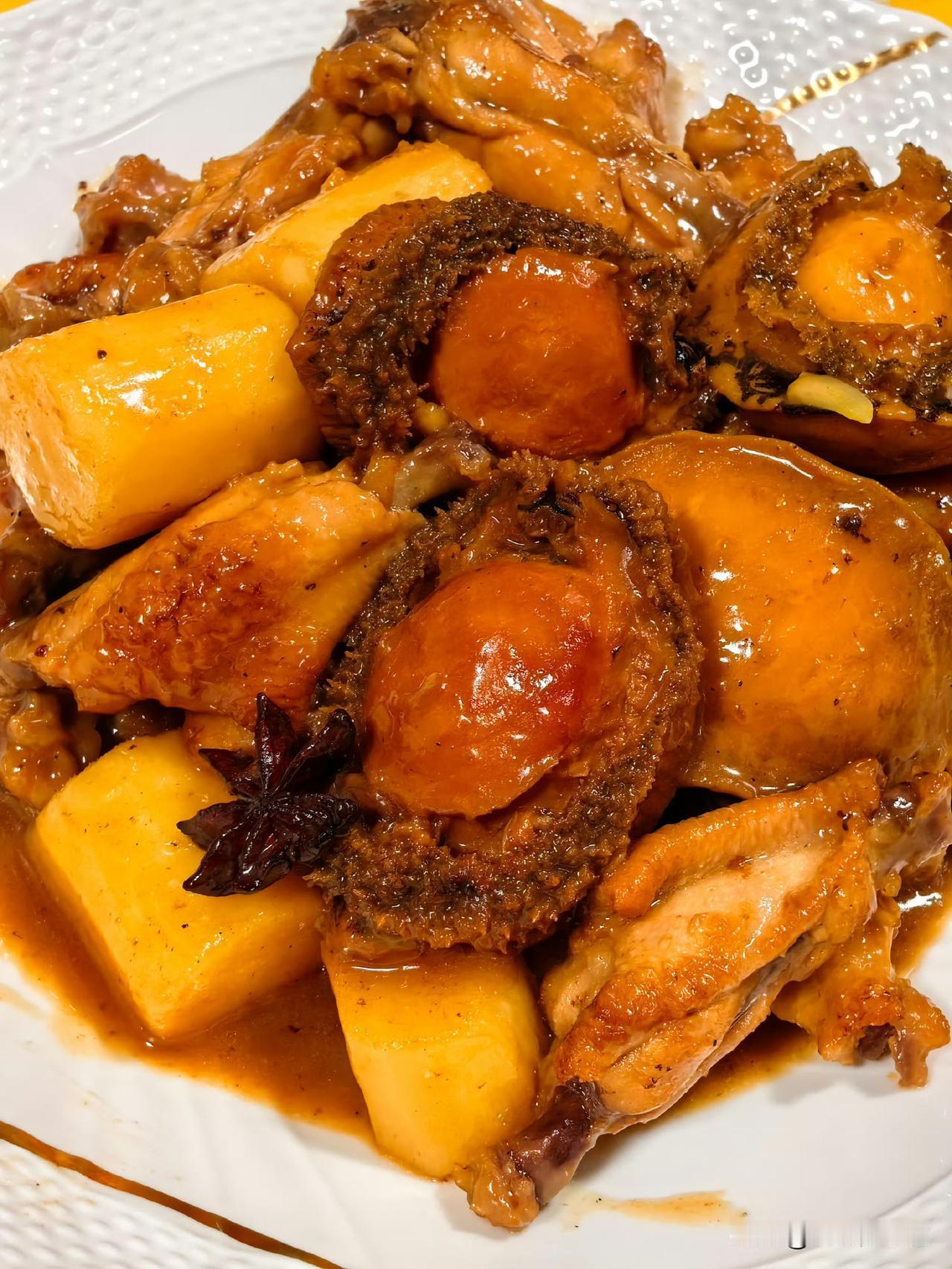一桌硬菜的快乐谁懂!葱油鱿鱼鲜嫩入味,花椒鲈鱼麻香上头,鲍鱼焖鸡更是酱香浓郁,每