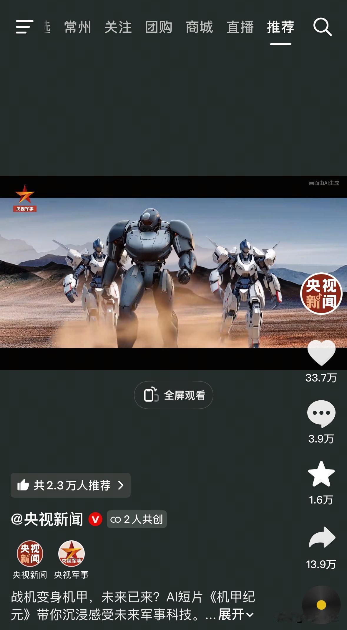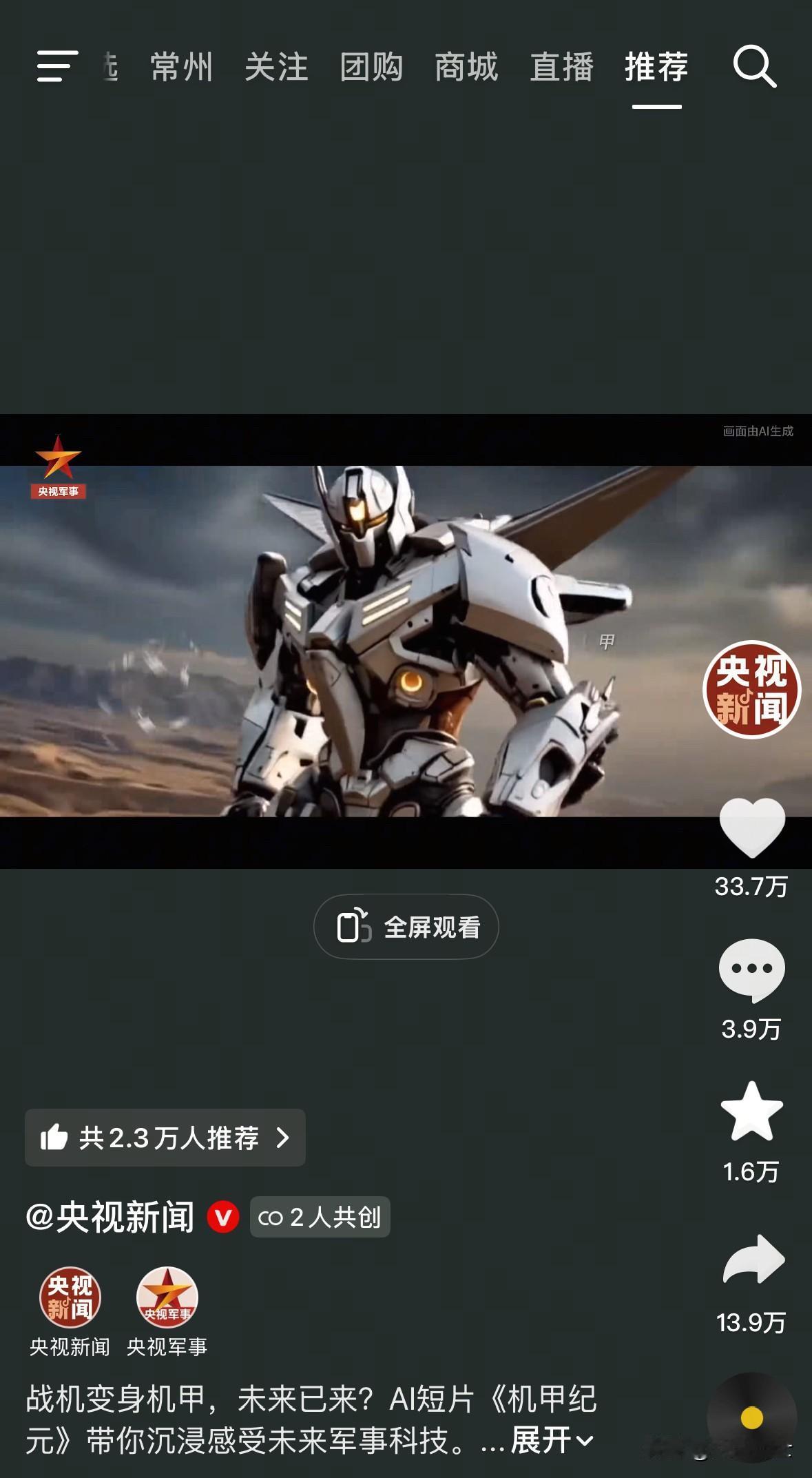 央视新闻和央视军事共创AI短篇《机甲纪元》,央视亲自认证科幻机甲真的要照进现