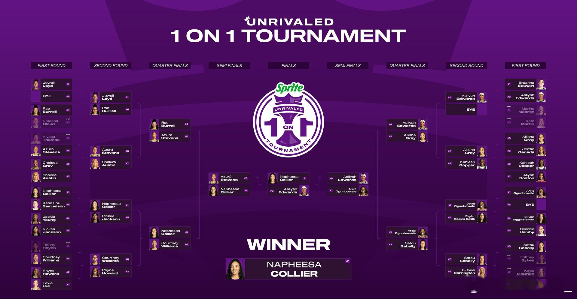 联赛还创新性增设1v1锦标赛,作为赛季中期的焦点赛事,于每年2月举办,冠军可独享25万美元的奖金。赛事规则极具看点:30名参赛球员分为4个小组,球迷的投票将决定球员的分组。除总决赛外均采用单败淘汰制,比赛先得11分或用时10分钟内得分高者获胜,总决赛则为三局两胜制。特殊规则包括7秒进攻时限、得分方继续控球,无犯规次数限制但非投篮犯规连续两次将被判罚1分且进攻方保留球权,延续了联赛快节奏的核心特点。