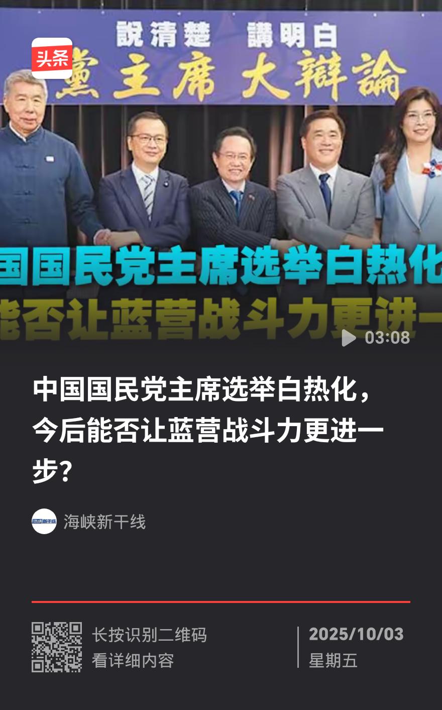国民党主席选举已进入决战阶段,蓝营一份全党员民调揭示的态势颇具深意。这份2日流出