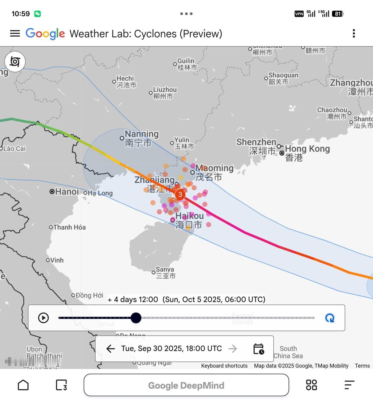 台风“麦德姆”锁定湛江!将于5号白天登陆湛江(最大可能是5号下午),登陆强度可达强台风级,随后中心会在5号夜里经过广西北海。 广东湛江–阳江,广西防城港–北海,海南文昌、海口,将有狂风暴雨。