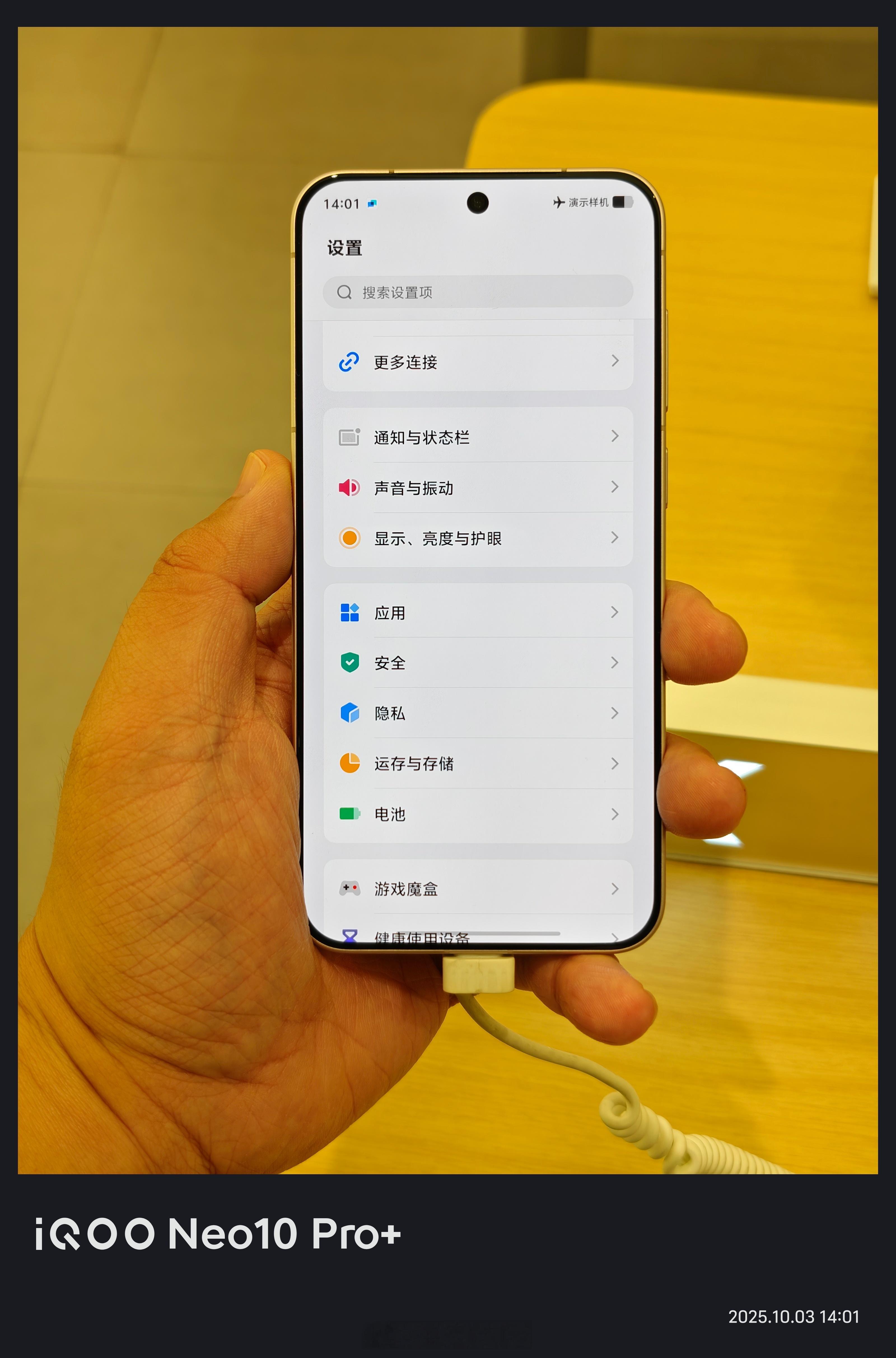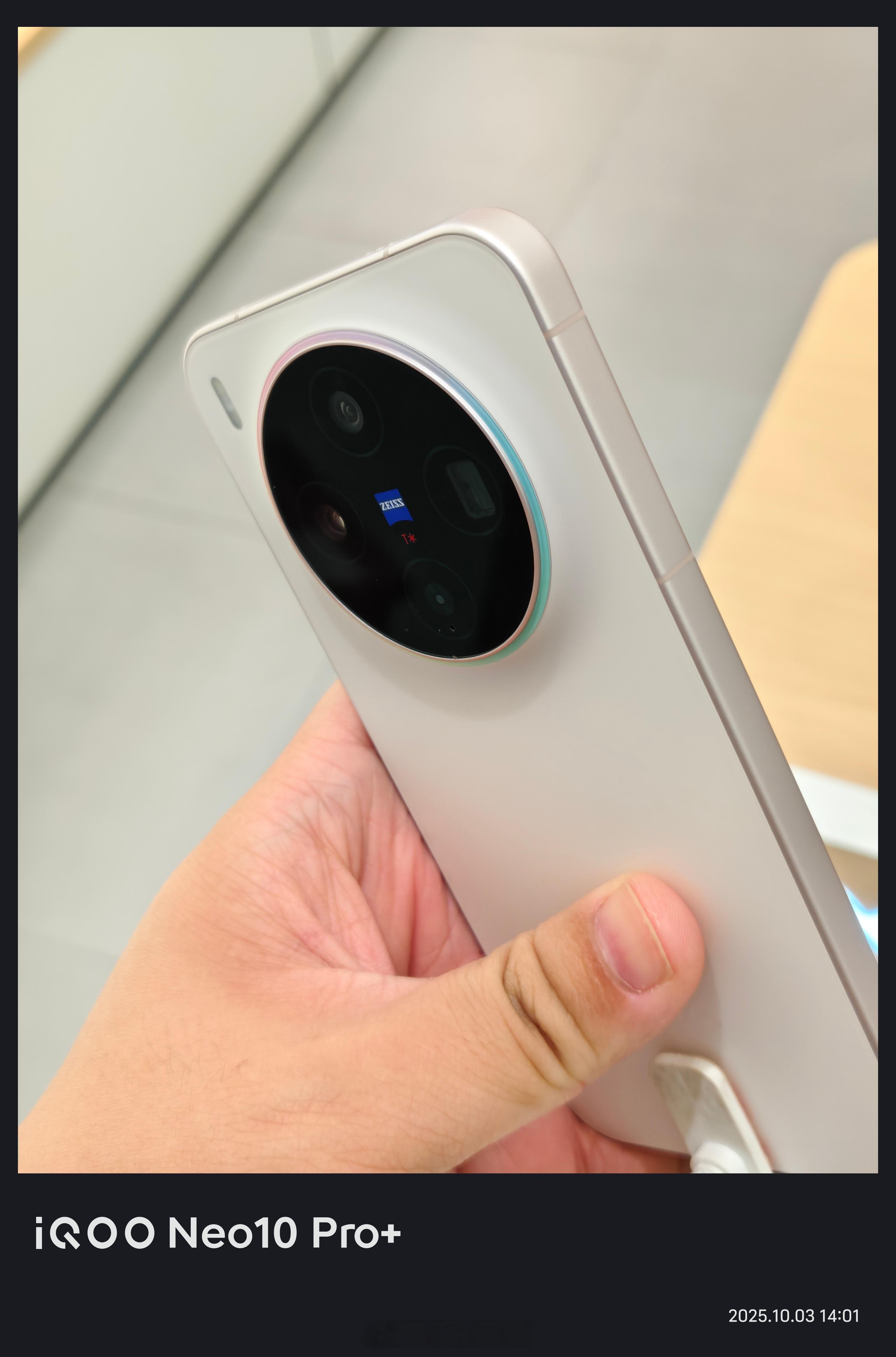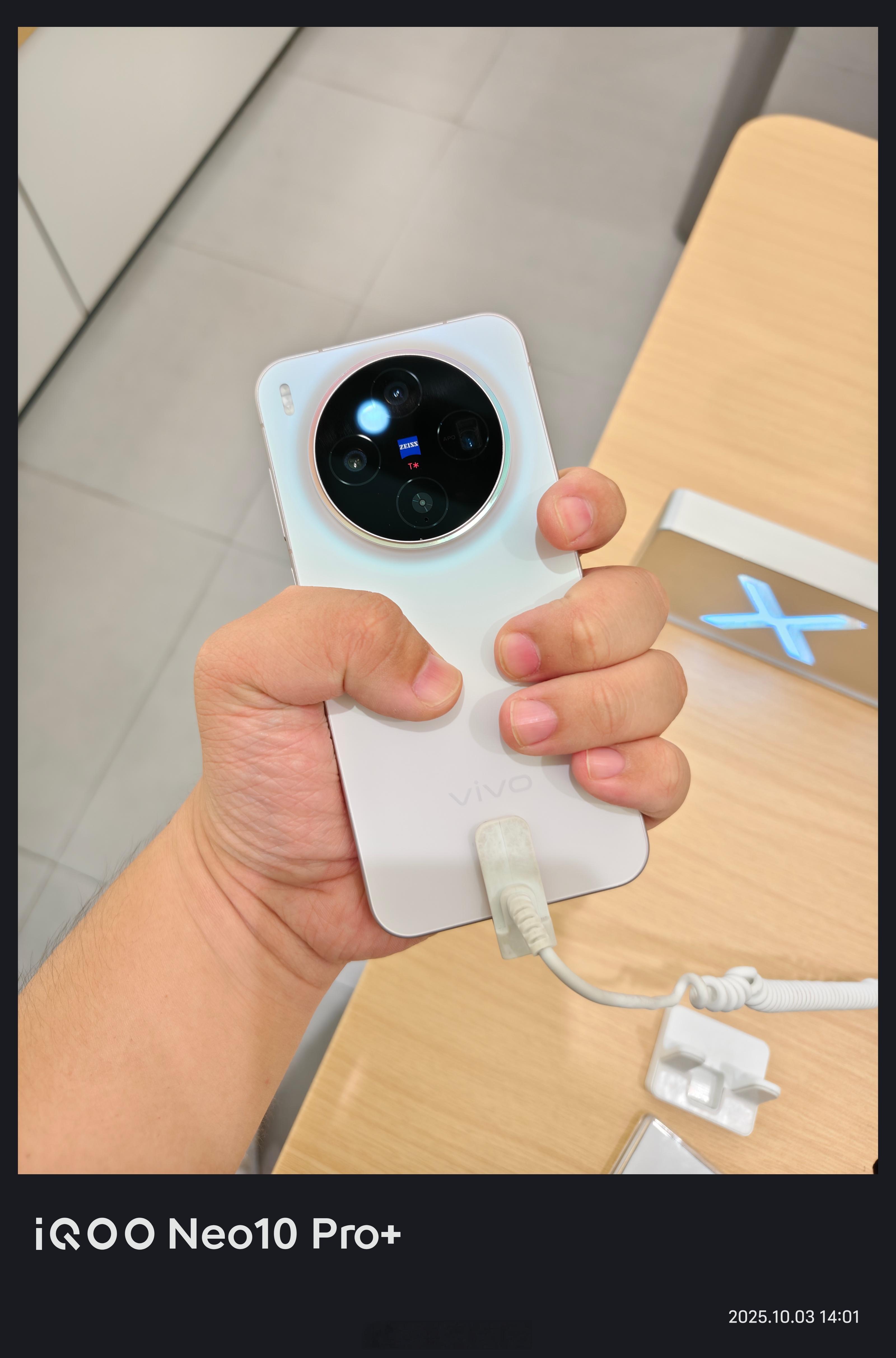 到店里把玩了一下vivo X300,一体冷雕和这个炫彩真的是很独特[鼓掌]单手掌握,而且也有潜望,目前还不能进行拍照等其他查看。过两天发布会会第一时间上手给大家测试一下的[点赞]