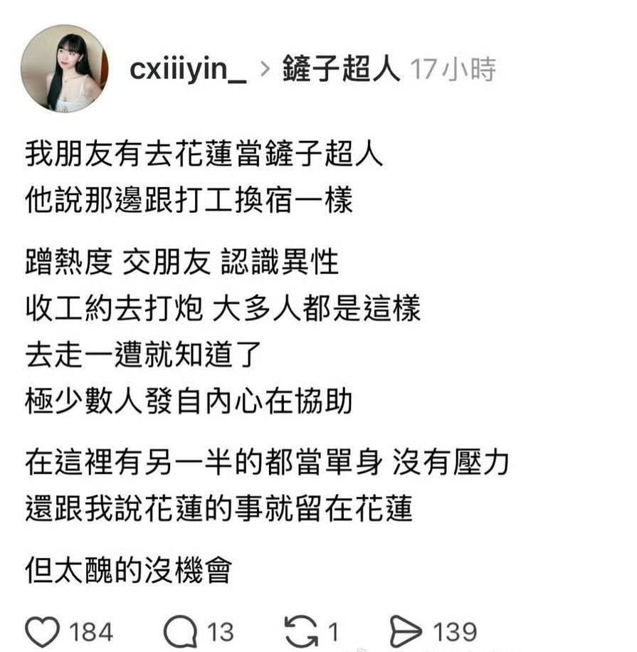 花莲救灾就是[doge]“……蹭熱度,交朋友,認識異性收工約去打炮大多人都是這樣