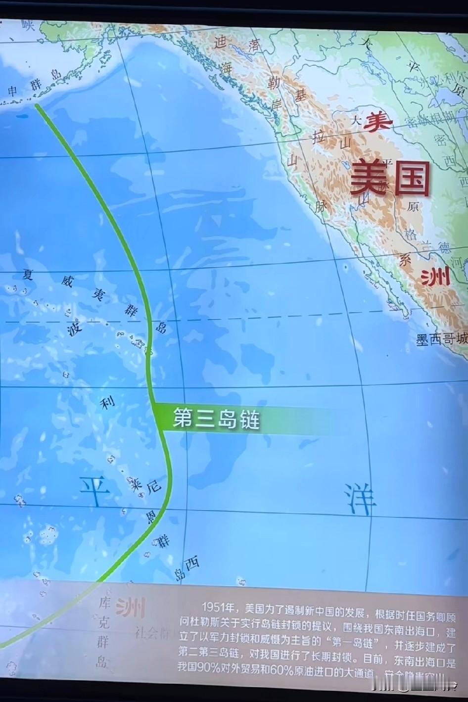美国精心布置的太平洋三条封锁中国的岛链,第三岛链也是鹰子的第一岛链 现在第一岛链和第二岛链已经名存实亡,但第三岛链对我们海军来说,还是有点困难,毕竟美国海军可不弱,还有夏威夷这个前哨,他们的远洋作战经验,还是可以的,等到我们核动力航母服役后就不一定了 依然记得初中地理老师有点哭腔的说道,台湾岛就是第一岛链突破核心,我们一定要收复台湾。记得零几年海峡两岸经常分析三个岛链,随着时代进步,突然变成了:鹰酱,你这仨大链子是给哥带身上装饰的吗?