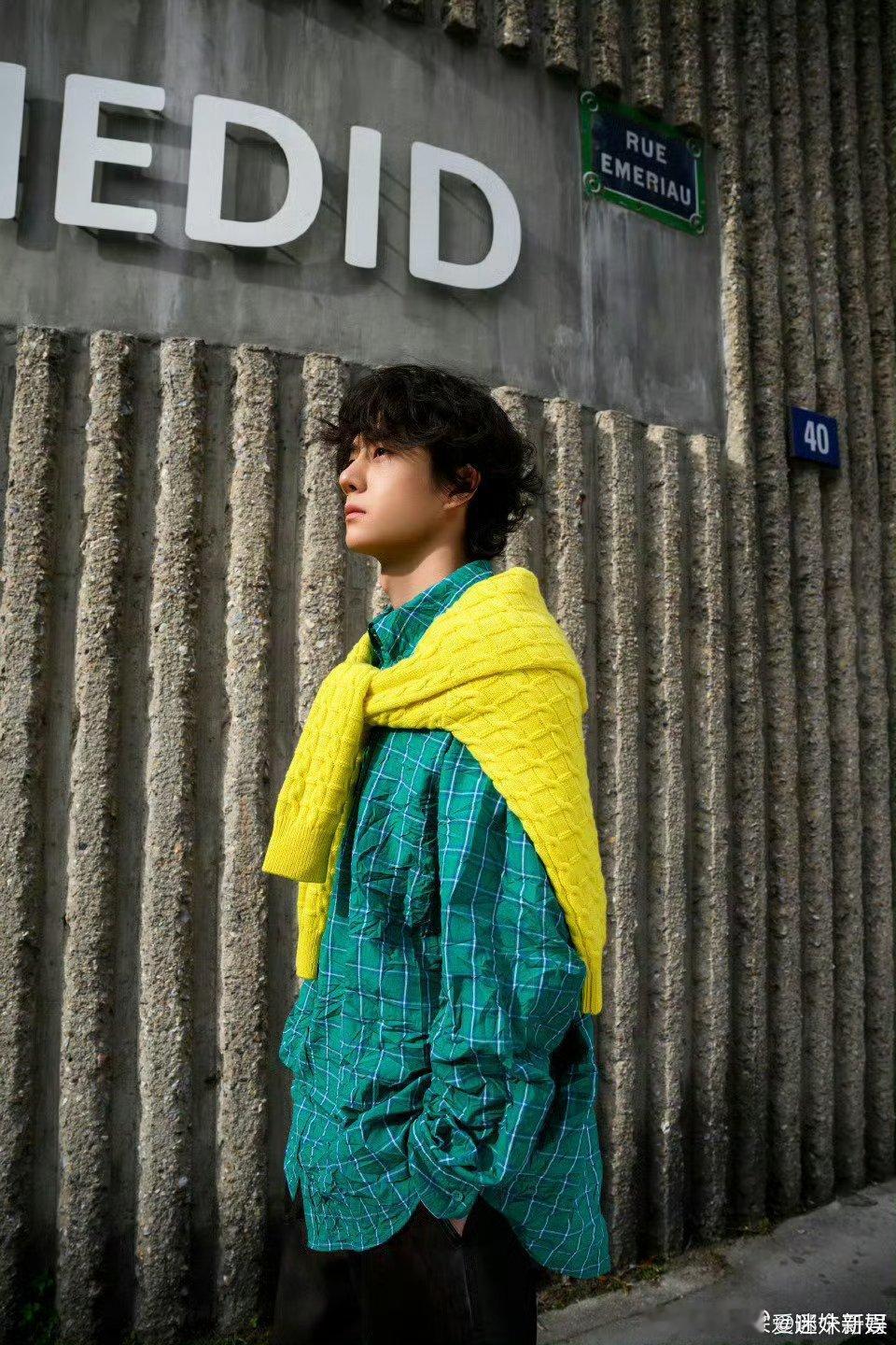 王一博时装周绿衬衫造型王一博罗意威看秀出图王一博罗意威看秀出图,帅,[色][色][色]