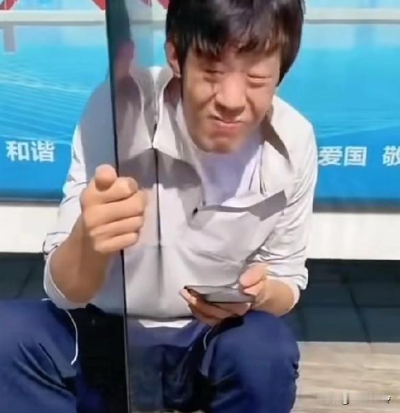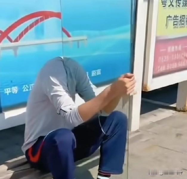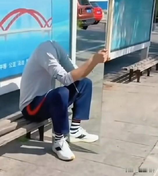 公交车站吓人一幕,路人吓得两腿发软,走近一看瞬间懵了! 这个老六如此拿镜子,头在