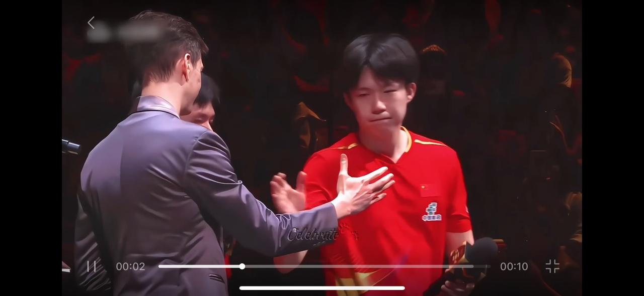 楚钦哥和Adam握手好有喜感,这就是特别的一种缘分吧,和谁都可以玩到一起! Adam也是难得这么素,花花绿绿改为正装,这是认真对待,对王楚钦也是特别的重视,一切自有因果,超级棒的小人儿! 没有谁不喜欢这样的大男孩吧,他笑我也笑,两个人的奔赴,还是一类人的奔赴!