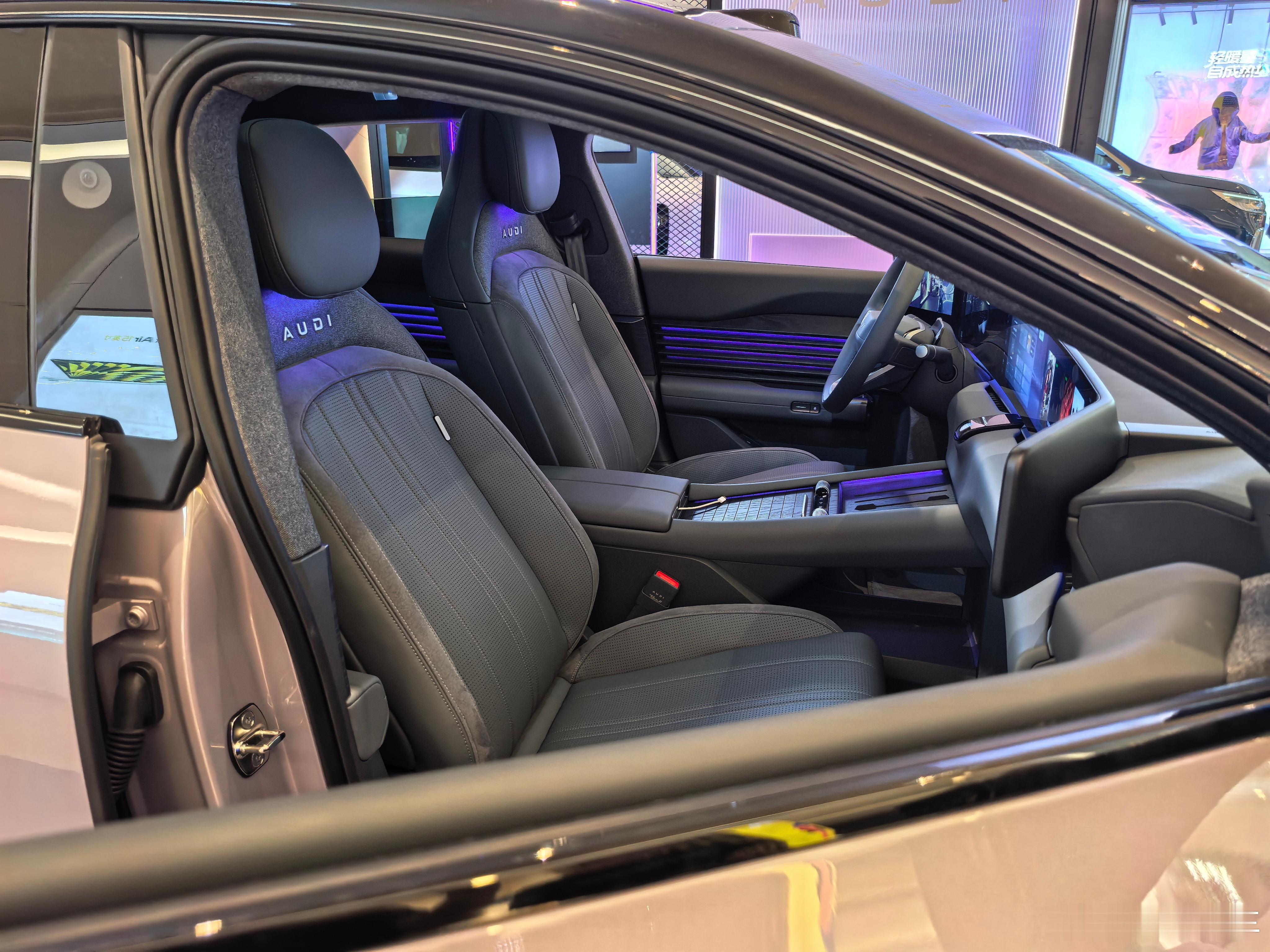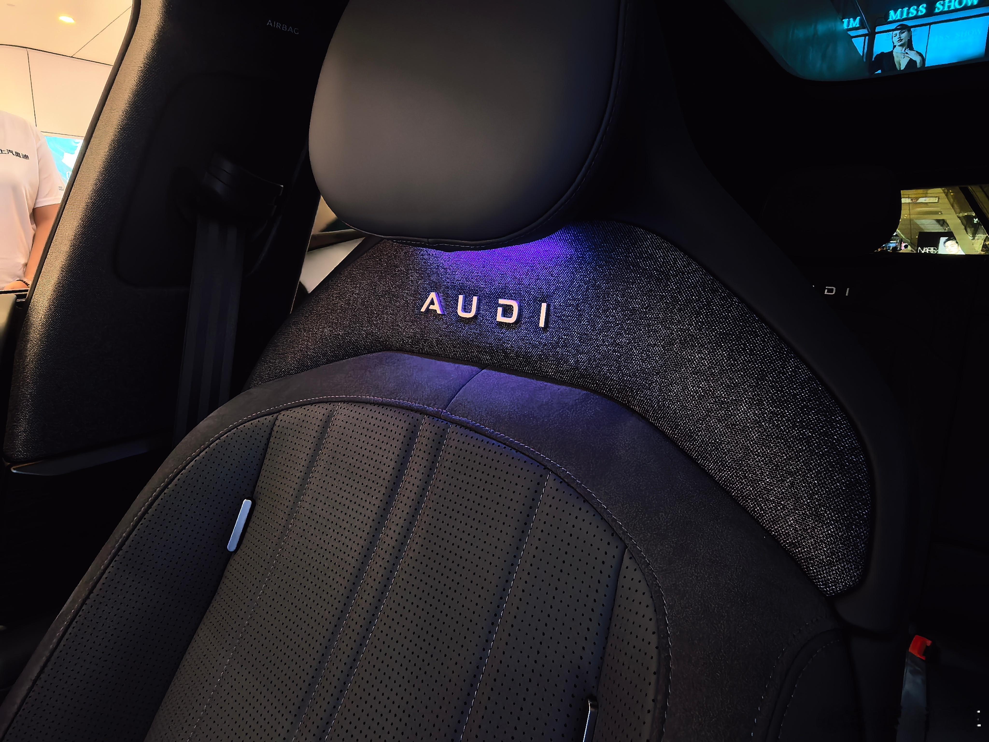 这个外观呢,我还是挺喜欢的,它很有电车的科幻感,也有奥迪的运动感和豪华感,头尾都有能亮起的AUDI车标,还有一圈灯带,它是由小的多边形组成的,辨识度还是很高的!