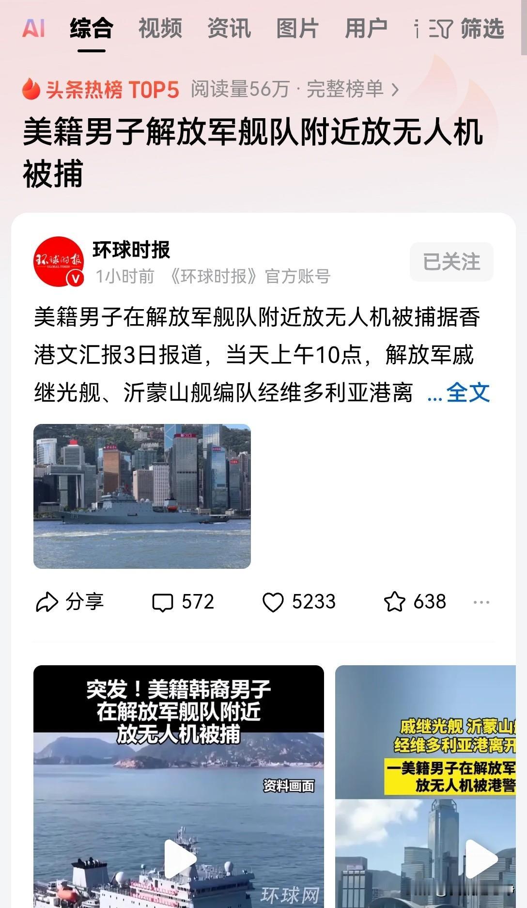 间谍真的是无孔不入啊!而且光天化日之下肆无忌惮,胆子真的是太肥了! 据香港媒体综合报道称,3号当天上午10:24,香港警方接到报警! 称有人在被列为禁飞区的香港文化中心附近放飞无人机。 而这片区域正好有解放军的舰队离开香港! 那就是戚继光舰,还有沂蒙山舰编队! 正好在战舰离港的节骨眼上就有人在禁飞区放飞无人机。 香港警方迅速出警,然后抓捕嫌疑人! 有人会说了,会不会是普通的无人机爱好者呢? 或者说一名军迷违规拍摄一些战舰的照片? 但是经过审讯才发现这个人的身份并没有那么简单。 它不是普通的中国公民,也不是普通的香港居民! 而是一名52岁的男性,他是在港工作的美籍韩裔工程师! 大家看看身份叠满了! 在香港工作的一名工程师,有美国国籍,但是却是韩国人! 就这种身份,你能说他是普通的军迷吗? 真的就是无人机爱好者那么简单吗? 很显然,这就是一名军事间谍,只不过段位比较低罢了! 手段太低劣,操作太幼稚! 这件事怎么说呢?随着咱们国家的军事发展,武器装备越来越先进! 以后这种东西会越来越多的,这么大的世界,那还没有几只苍蝇啊!