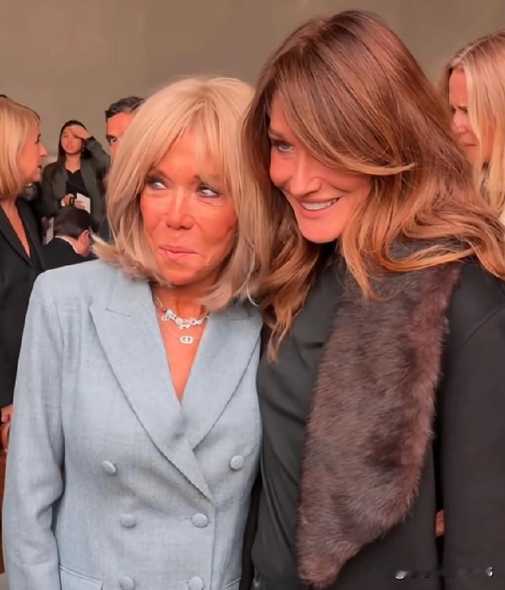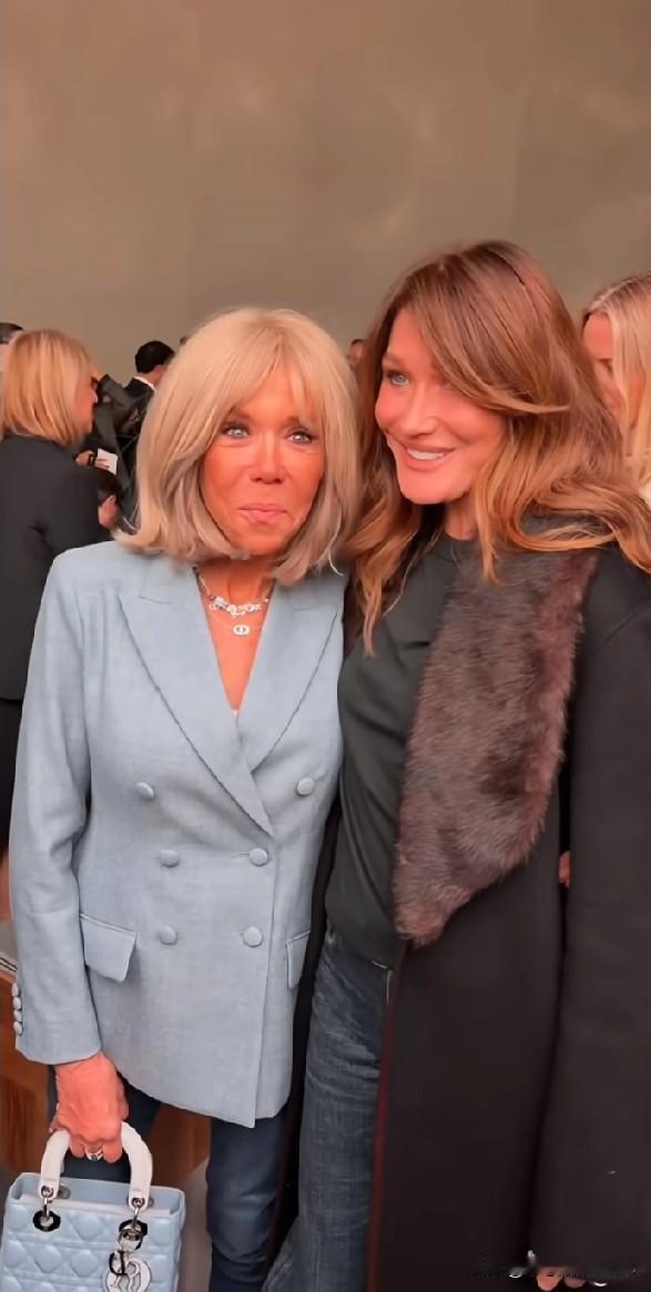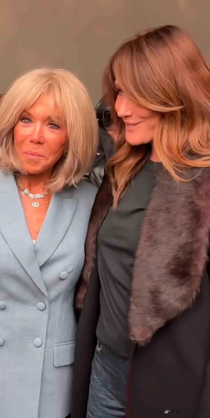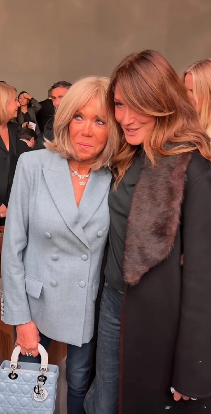 两任法夫人同框真有看点!布丽吉特和马夫人站在一起,一个优雅从容,一个甜美可爱。不