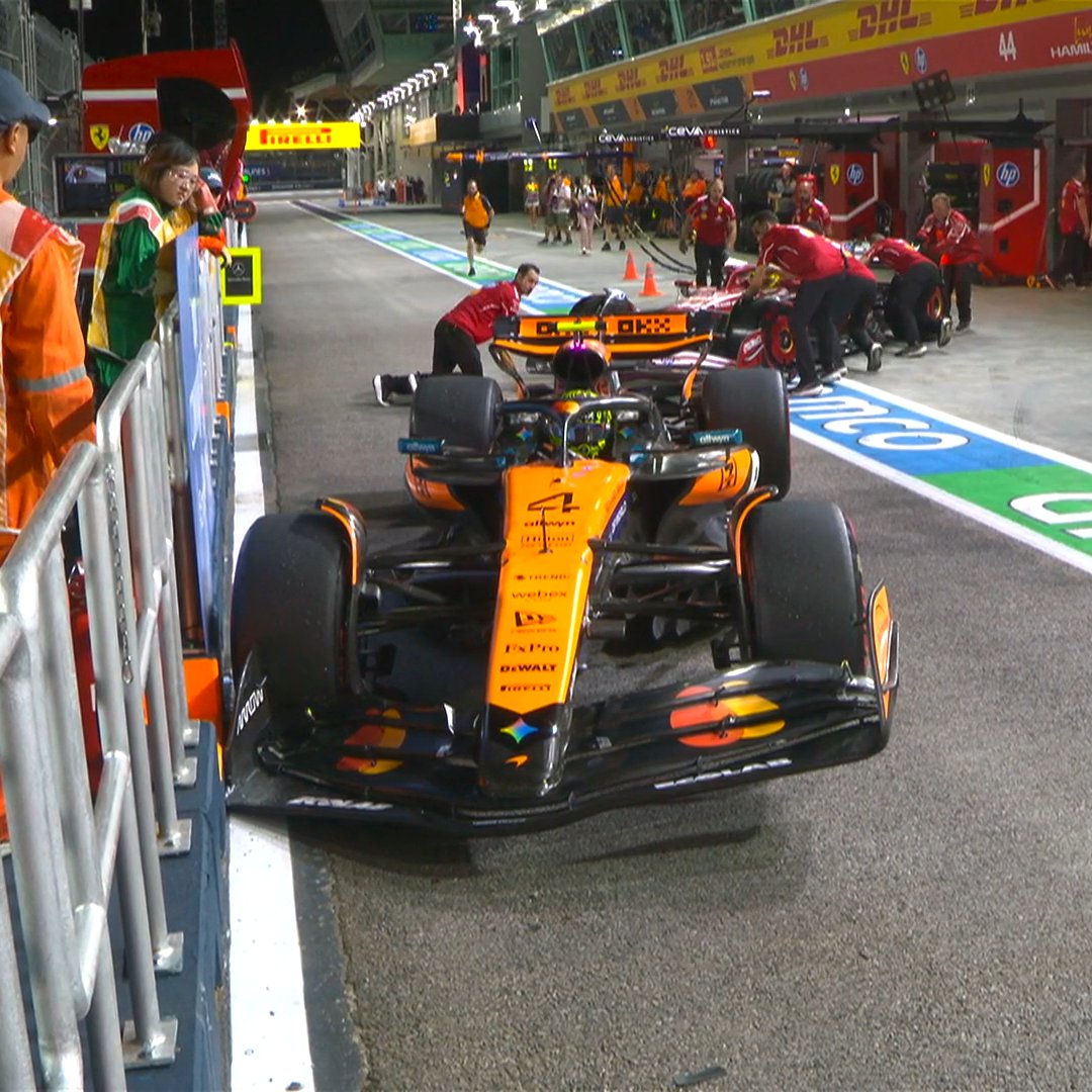 F1官方推特账号发推特报道,诺里斯与勒克莱尔在维修区通道发生接触,而此时赛道刚刚开放绿灯!!兰多因这次碰撞导致前翼破损#F1#SingaporeGP