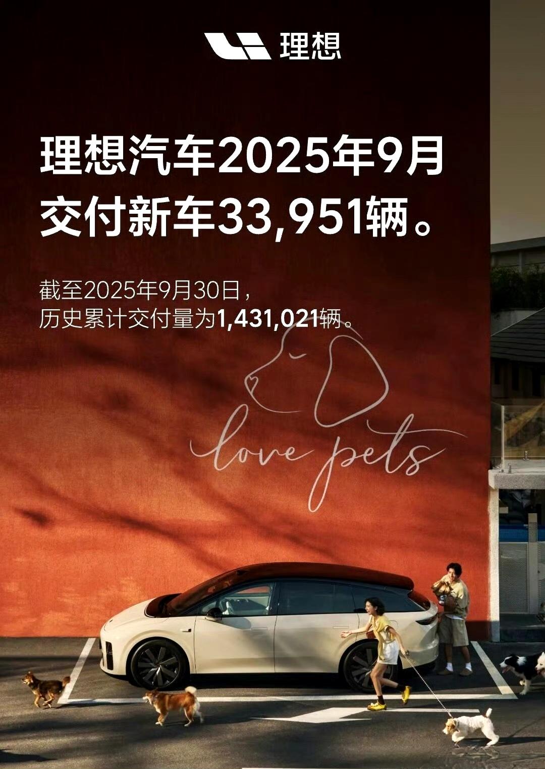 蔚来9月销量超过理想 蔚来9月销量:34749辆 理想9月销量:33951辆