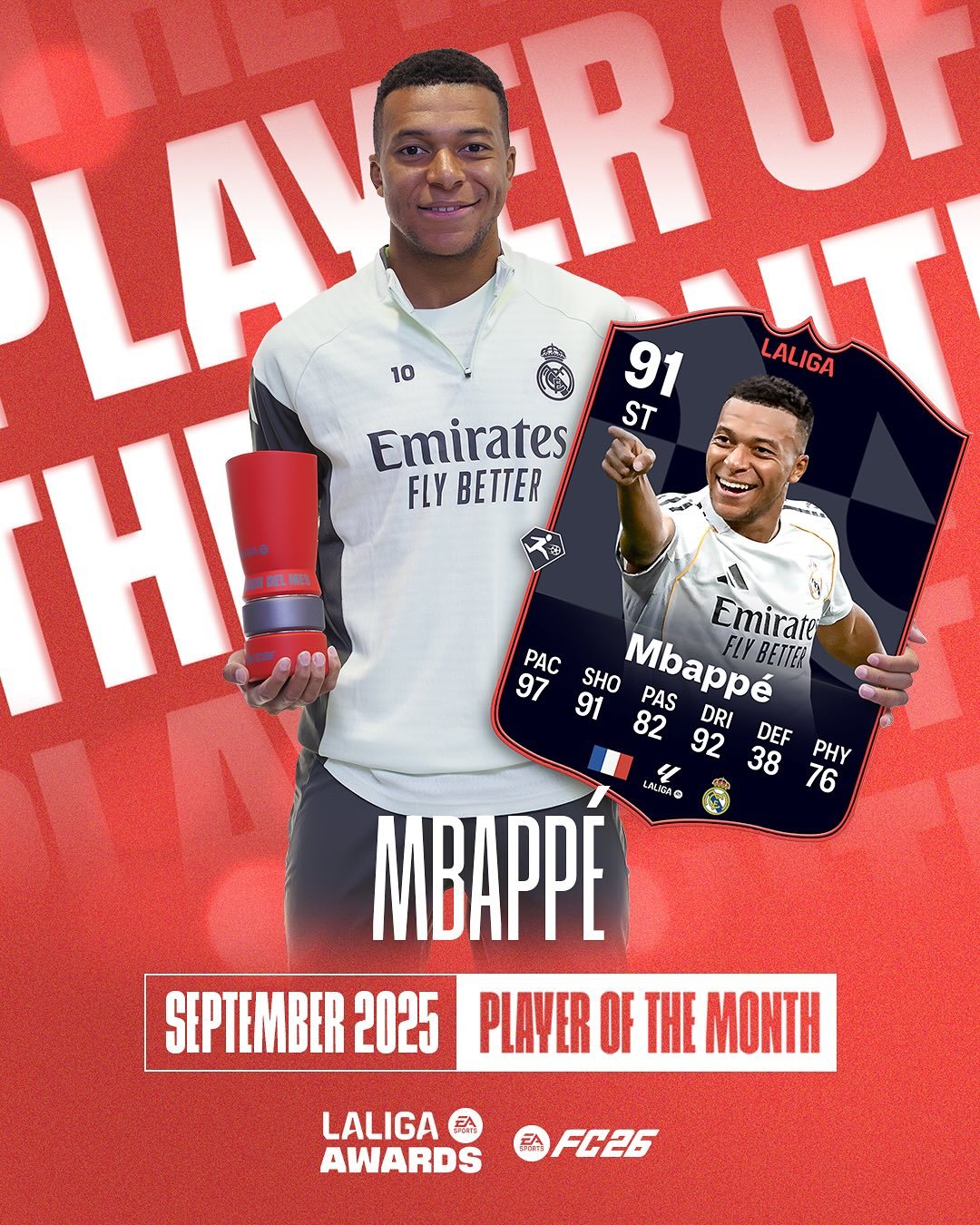 官方:姆巴佩当选西甲9月最佳球员!⭐️
