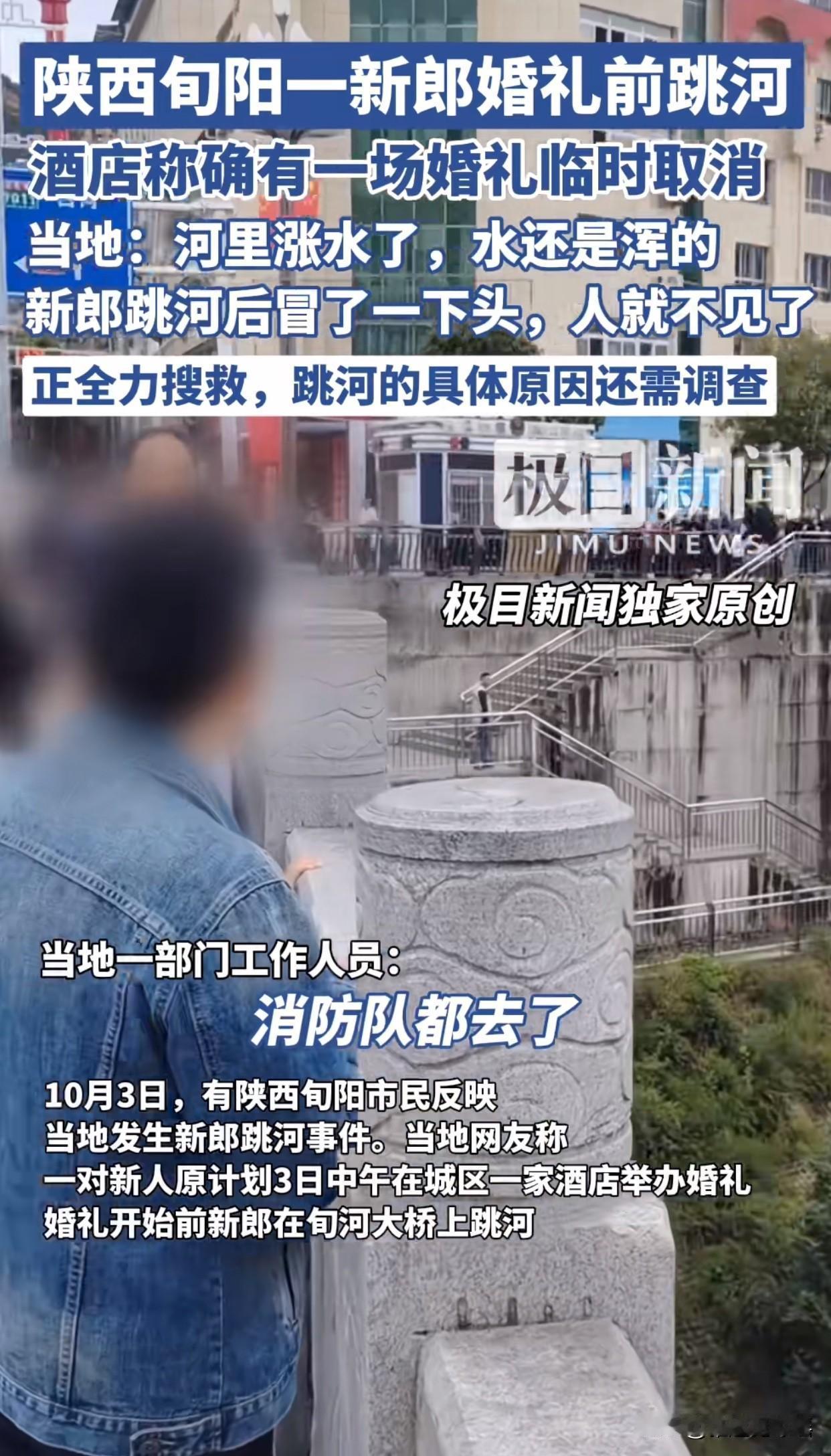 “太揪心了啊!”陕西出了件因为彩礼引发的悲剧!新郎因为新娘家突然要多加3万下车礼,在结婚当天跳河了。当时迎亲队伍都到门口了,女方家突然变卦要加钱,新郎一时拿不出这么多,新娘也没帮他说句话。他又急又气,直接从旬阳大桥跳了下去。最近河水又大又急,到现在人还没找到。 说真的,我听着心里特别难受。结婚本来是件大喜事,结果被彩礼闹成这样。说实话,这种临时加价的做法真的太伤感情了。现在很多普通家庭为了结婚彩礼都快被压垮了,我觉得这个老规矩真的得改改了。 要我说,两个人之间的真情实感比多少钱都重要。要是真心相爱,就该互相理解、互相扶持。希望这件事能让更多人明白:婚姻是两个人一起过日子,不是做买卖谈价钱。