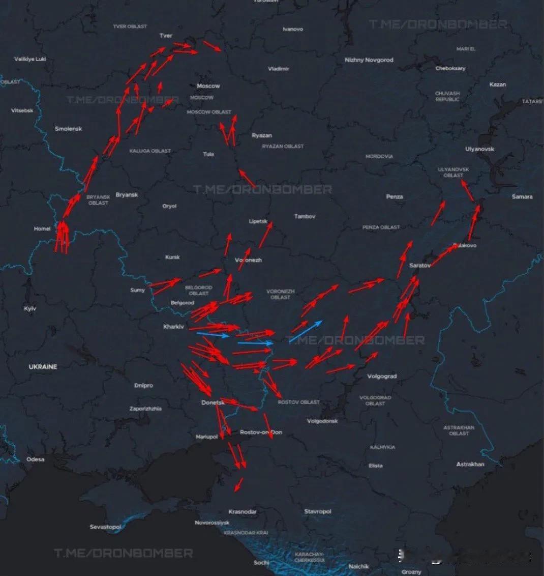 突发新闻: 乌克兰刚刚对俄罗斯发动了大规模自杀式无人机群袭击。