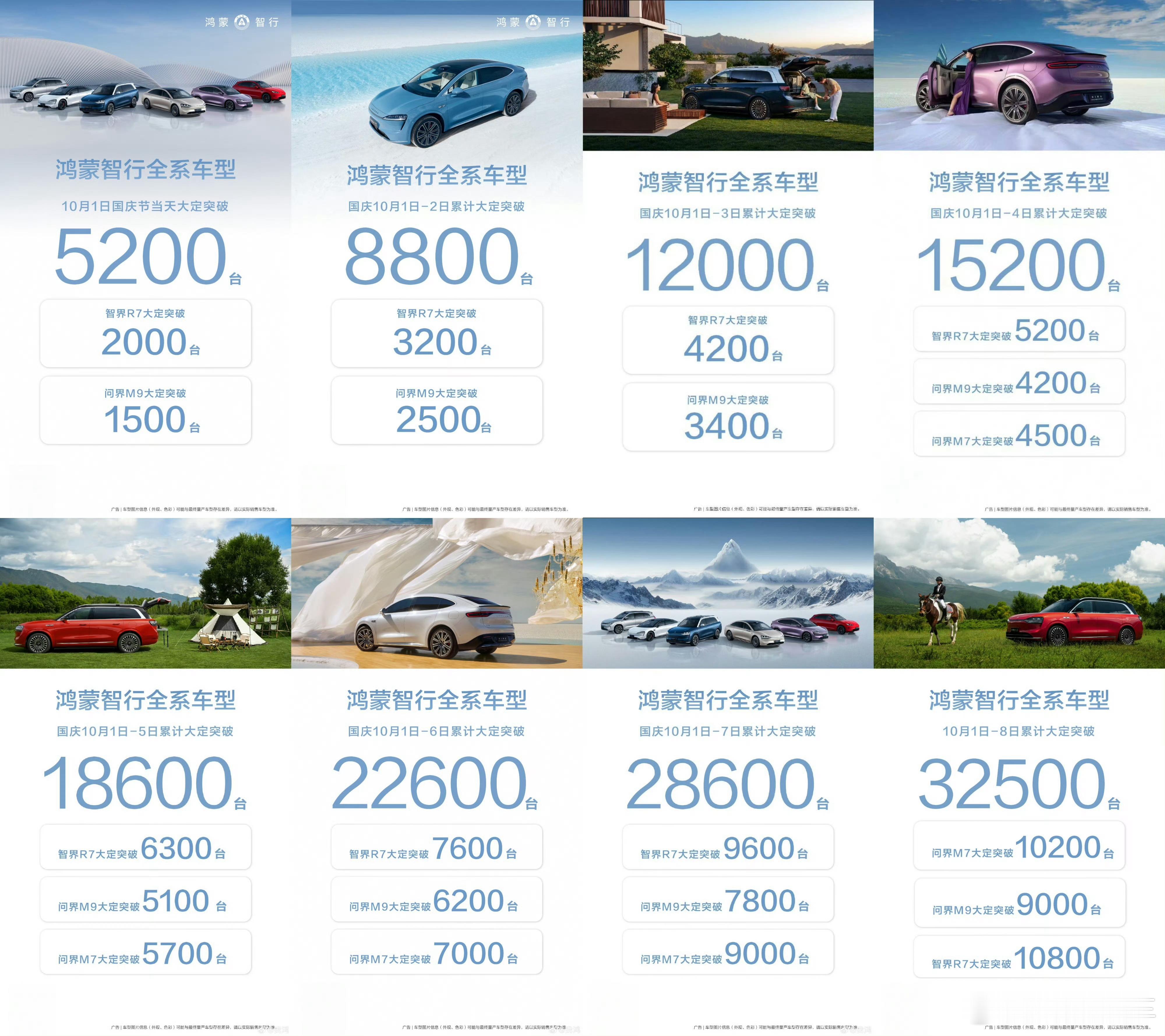 对比一下去年的成绩,今年鸿蒙智行国庆前三天大定同比增长持续超过50%,问界M8和M9加起来保守计算应该也有5000+台,稳定出色~