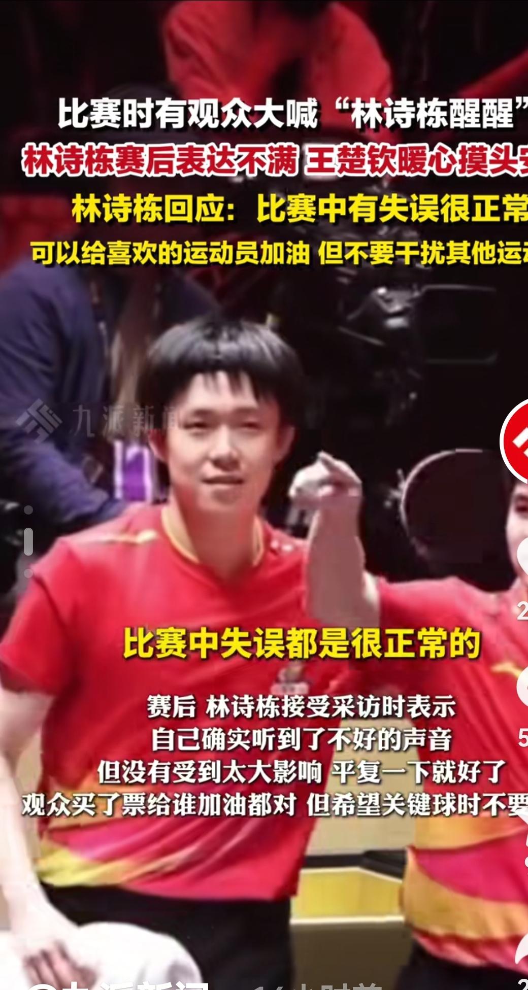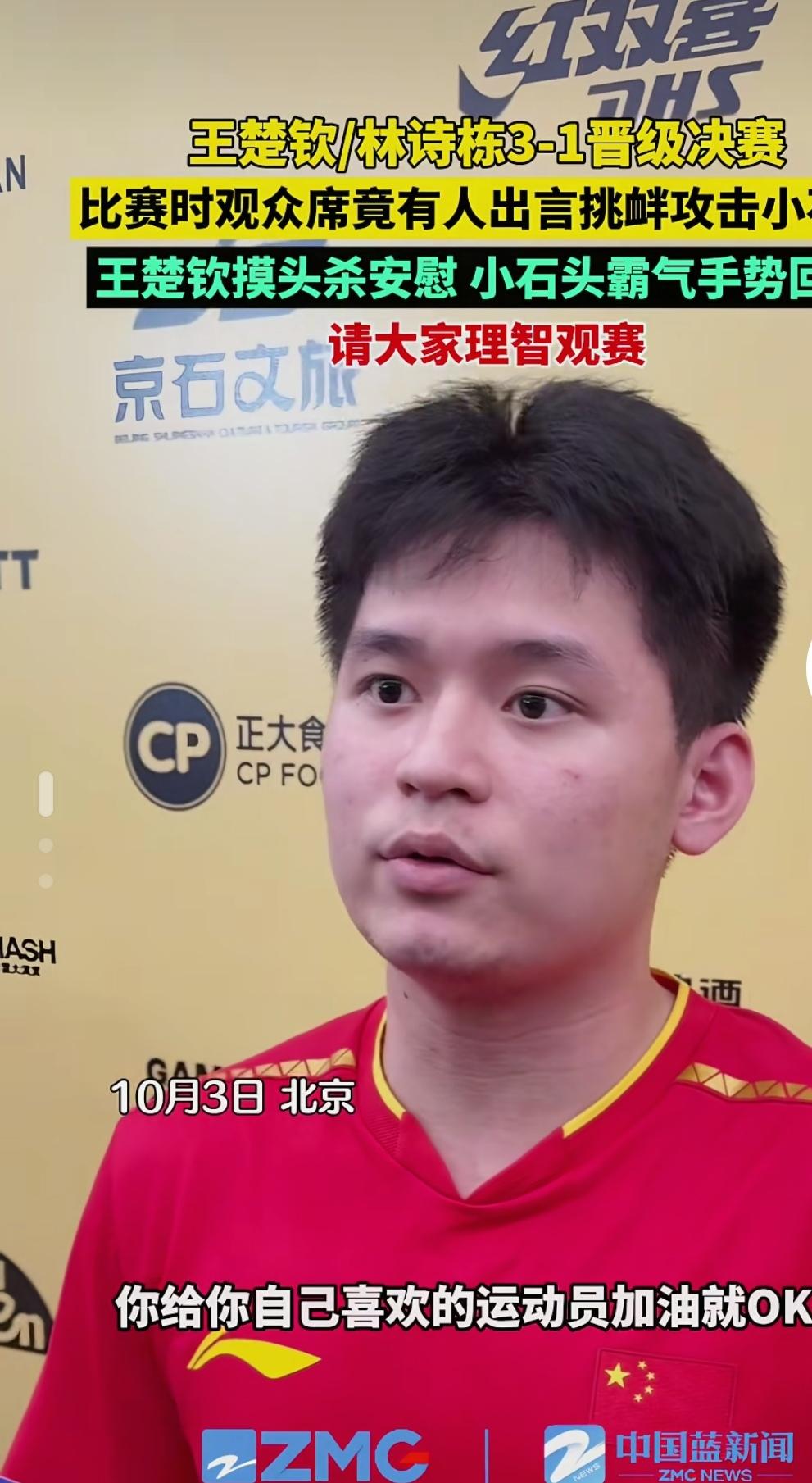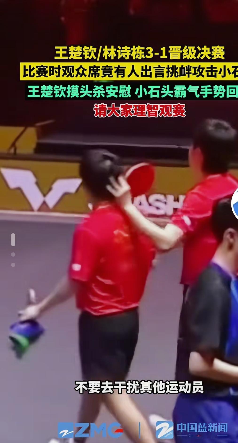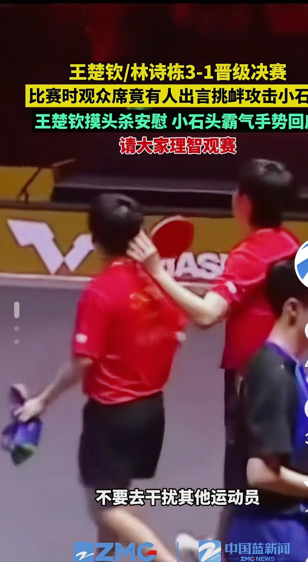永远比不上大头, 小石头还是太稚嫩了, 差的不是一星半点。 和大头比,不仅仅是技术上的差距, 经验的缺乏, 临场发挥的能力, 应变的机动, 更多的是怎样做人, 怎样做一个优秀的运动员, 怎样做一个全民偶像。 北京大满贯,男双, 小石头和大头并肩作战, 毋庸讳言,大头更成熟,更从容,更稳定, 发挥的更出色, 比赛过程有一个女球迷大声喊:林诗栋,醒醒。 这样的呼声着实让人听了不舒服, 每一个运动员都在竭尽全力去拼每一场比赛, 偶尔的失误在在所难免, 指责每一个运动员都是小题大做, 将军打猎不追小兔, 这样的事本该不予理睬, 伏尔泰说话:我不同意你的观点, 但我坚决捍卫你说话的权利, 在这个言论自由的时代, 确实无可厚非, 但比赛结束,小石头很不理智的指向这个女球迷, 让人瞬间感觉格局不够, 修养欠缺。 虽然事后采访小石头坦言: 观众买票,为喜欢的运动员加油无可厚非, 自己是有点冲动。 但还是让人看到了他和顶尖运动员的差距。 大头揉了揉小石头的头, 言外之意对这样的事可以置之不理, 作为一个公众人物, 必须注意自己的言行举止, 要学着成熟, 这一刻前辈对后辈的厚爱具象化了, 确实,小石头在蜕变成优秀运动员的路还很长, 需要锤炼, 需要磨砺, 需要不动声色, 需要淡定从容。 继续加油吧,小石头。