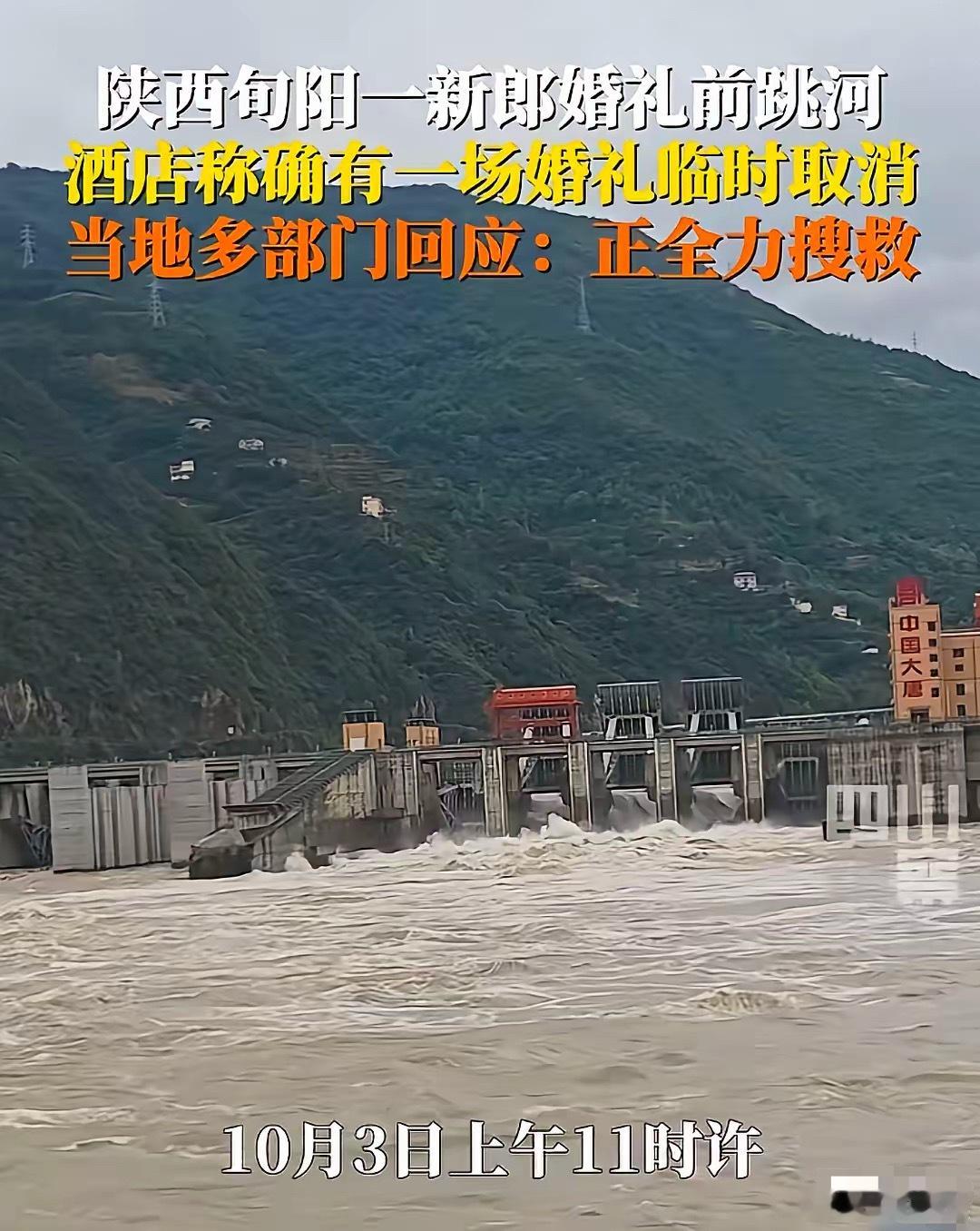 陕西发生一起新郎跳河事件,在结婚当天中午跳河,现在还没有找到。