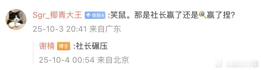 谢楠被吴所谓劝学吴所谓吴老二打架被教育的是谢楠 分享生活趣事,称吴所谓和吴老二打闹时向她呼叫支援,让拿顶门的大缸 。谢楠回应后,好奇这话的典故出处,吴所谓回答是《四世同堂》 。谢楠疑惑《四世同堂》是否有这样的台词,吴所谓调侃谢楠,除了看喜剧,也可以看看书 ,网友热评:儿子打架结果被教育的是妈妈[泪奔]
