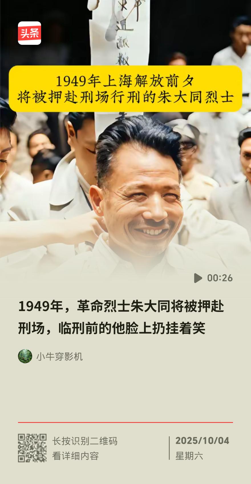1949年5月11日的闸北公园,枪声落下时,被民众啐骂为“汉奸”的朱大同嘴角凝着笑意。这张被镜头定格的笑脸,在陈毅元帅听闻死讯时,化作一声震彻天际的痛哭。众人眼中的叛徒,在元帅口中是“真正的烈士”。 安徽萧县的农家少年朱大同,1907年降生在这片后来浸透他隐忍的土地。中学肄业后执掌教鞭,兼任训育主任的日子里,红色思潮悄然扎根。21岁那年,他放下粉笔加入党组织,很快成长为徐州特委巡视员兼萧县县委书记,1932年策划的萧县暴动虽因经验不足失败,却显露着热血底色。 1934年的白色恐怖中,朱大同身陷囹圄。酷刑未能摧毁其意志,他却在出狱后选择了一条更凶险的路——伪装叛变,潜入中统。两年间攀升至徐州特务室视察员,发表反共文告、策划逮捕行动,甚至将苏鲁豫皖特委书记郭子化送入牢笼。骂名如潮水涌来,同志的鄙夷、家人的不解,他悉数吞咽。没人知道,郭子化后来被他暗中释放,那些“恶行”背后藏着源源不断送往组织的情报。 1941年的变故更添其“罪证”。率部进攻新四军未果反遭日军俘获,朱大同在红薯窑中看着被困的村民与学生,选择登报“投敌”。表面就任清乡大队长的他,实则暗中组建队伍,多次与日军激战,毙敌数百。警卫员侯兴胜后来证实,日军的严刑拷打从未撬开他的嘴,那次“投降”不过是为保他人性命的权宜之计。 上海解放前夜,无锡的逮捕令终结了他15年的潜伏生涯。国民党的审讯中,身份彻底暴露的朱大同未吐一字。刑场上,烂菜叶与臭鸡蛋砸向他,他始终沉默,唯有笑容里藏着解脱——百万雄师正横渡长江,黎明已在眼前。 1950年,朱大同被追封烈士的消息引发哗然。那些年背负的骂名,那些刀尖上的行走,终于有了注解。隐蔽战线的英雄从不是只有光鲜的赞誉,更多如朱大同这般,以“叛徒”之名行烈士之事,在误解中坚守信仰。 陈毅元帅的痛哭,是为这忍辱负重的伟大。比慷慨就义更难的,是在千夫所指中初心不改。朱大同的故事撕开历史的褶皱,让我们看见光明到来前,那些在黑暗中独自燃烧的灵魂。你支持中国女人为了爱情嫁给老外吗 你认为谁能在国民党主席选举中脱颖而出