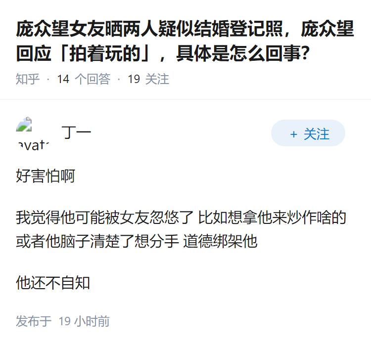 庞众望女友晒两人疑似结婚登记照,庞众望回应「拍着玩的」,具体是怎么回事?