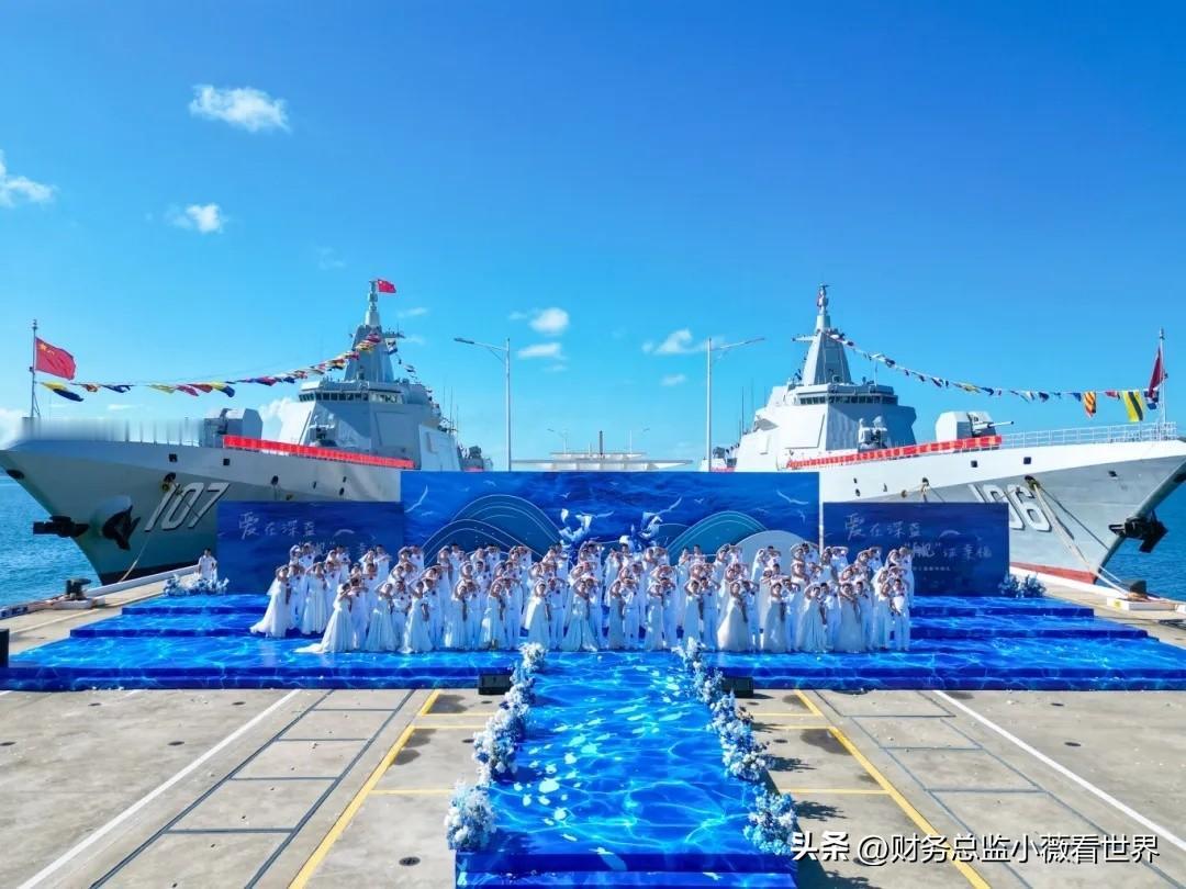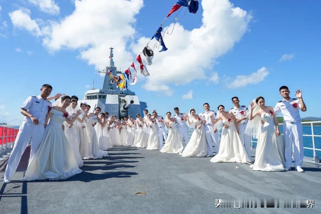 不得不说,我们的海军官兵真的很幸福,结婚的时候,两艘055大驱当背景,此等排面也