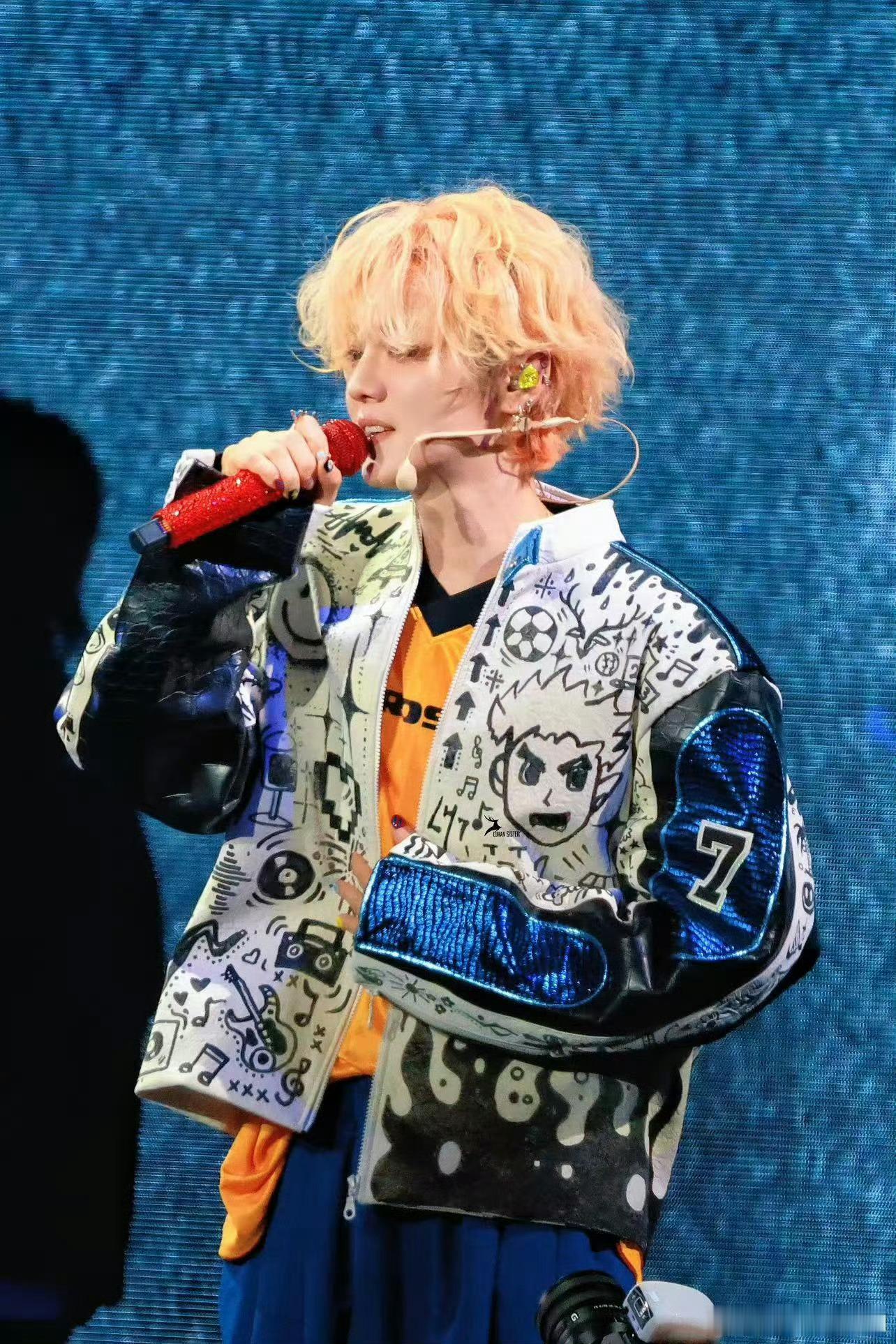 鹿晗定制手绘痛衣鹿晗金色小卷毛 澳门开场暴击!金色卷毛像童话王子,手绘机车服暗藏玄机——足球音符是初心,自画像鹿人是浪漫。这件行走的青春纪念册,谁不想拥有同款!