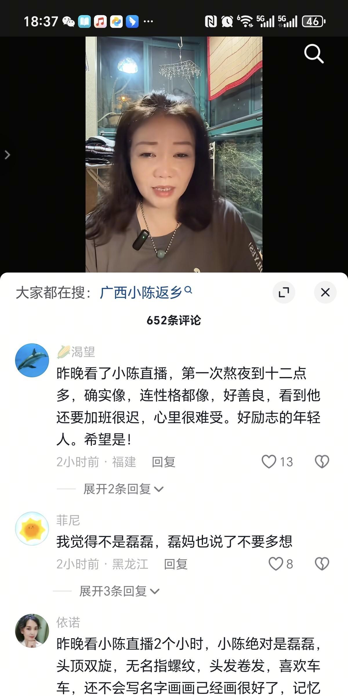 王磊妈妈唐蔚华,发抖音,又对比DNA 说句实话,我怕网友喷我! 我总感觉王磊不在了! 因为那么大张旗鼓的扩散信息, 都没有找到! 王磊不是拐卖的, 是被绑架的! 很可能撕票了! 要不然,路顺东不得说出来, 争取减刑啊! 这一次,是广西的一个孩子, 很多人说像王磊爸爸! 但是我看的一点也不像! 我觉得王磊妈妈估计也看着不像! 要不然她的性格, 还能等到国庆节假期结束后再对比血型 这些年,王磊妈妈唐蔚华也不容易 找孩子,就是支撑他们活下去的勇气吧! 如果知道孩子不在了 应该接受不了这个事实!