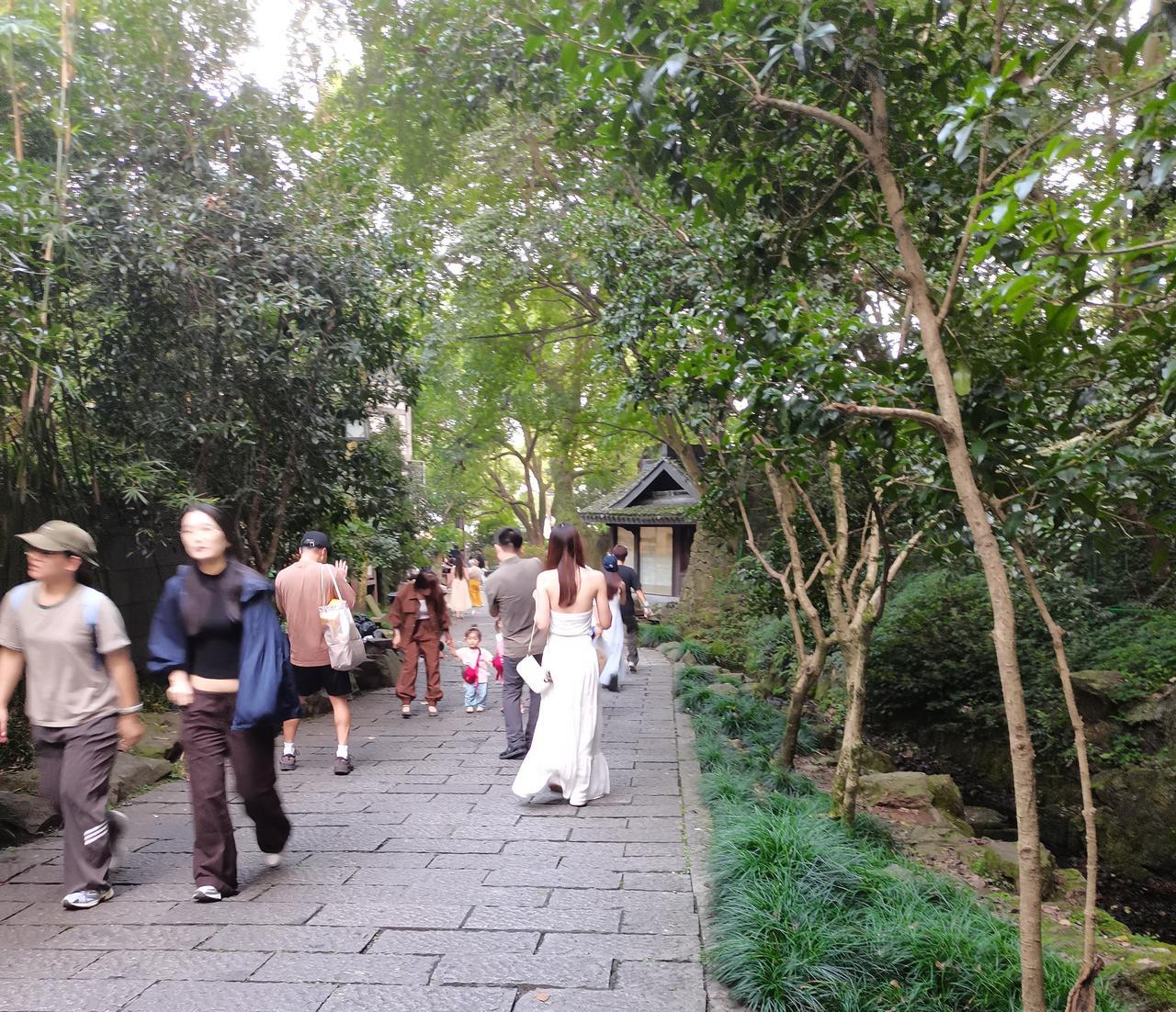 杭州六和塔附近 看见好多年轻的女孩子(估计也有已婚妇女)穿着这种曳地长裙,然后上