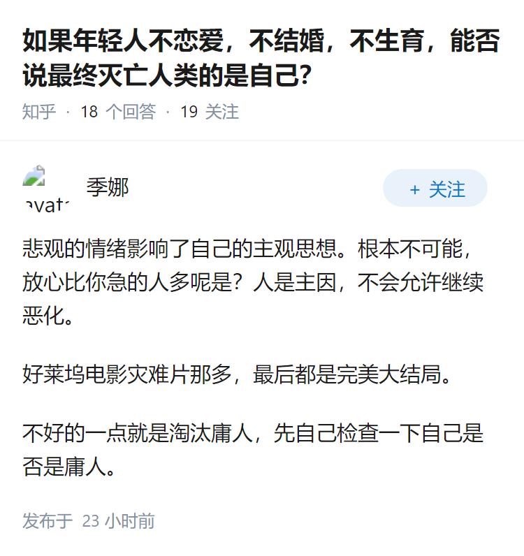 如果年轻人不恋爱,不结婚,不生育,能否说最终灭亡人类的是自己?