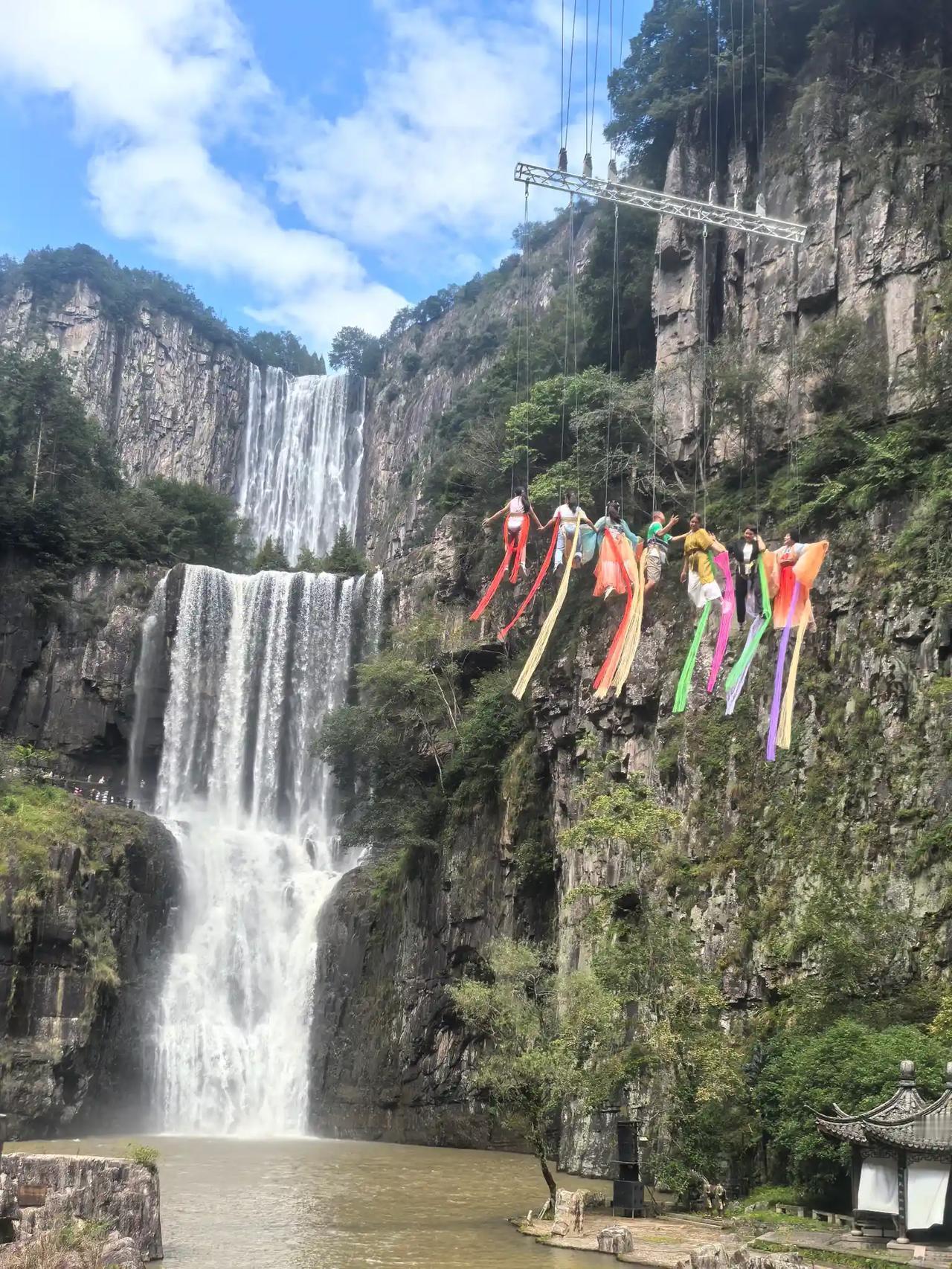 虽然是表演,还是忍不住揪着心!瀑布附近本身地形就复杂,水流急、地面滑,边上风大,孩子们还从空中飘,想想都手心冒汗。就算是专业表演,安全绳这些防护措施也得检查得严严实实才行。家长要把孩子看紧点,这种危险的场景真得避开! (图片全部来自网络侵删)