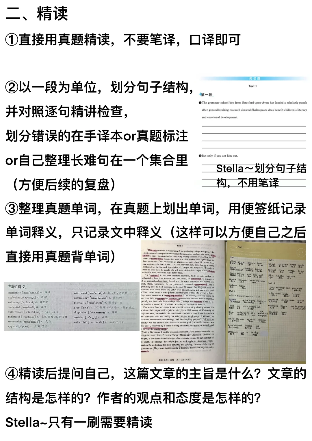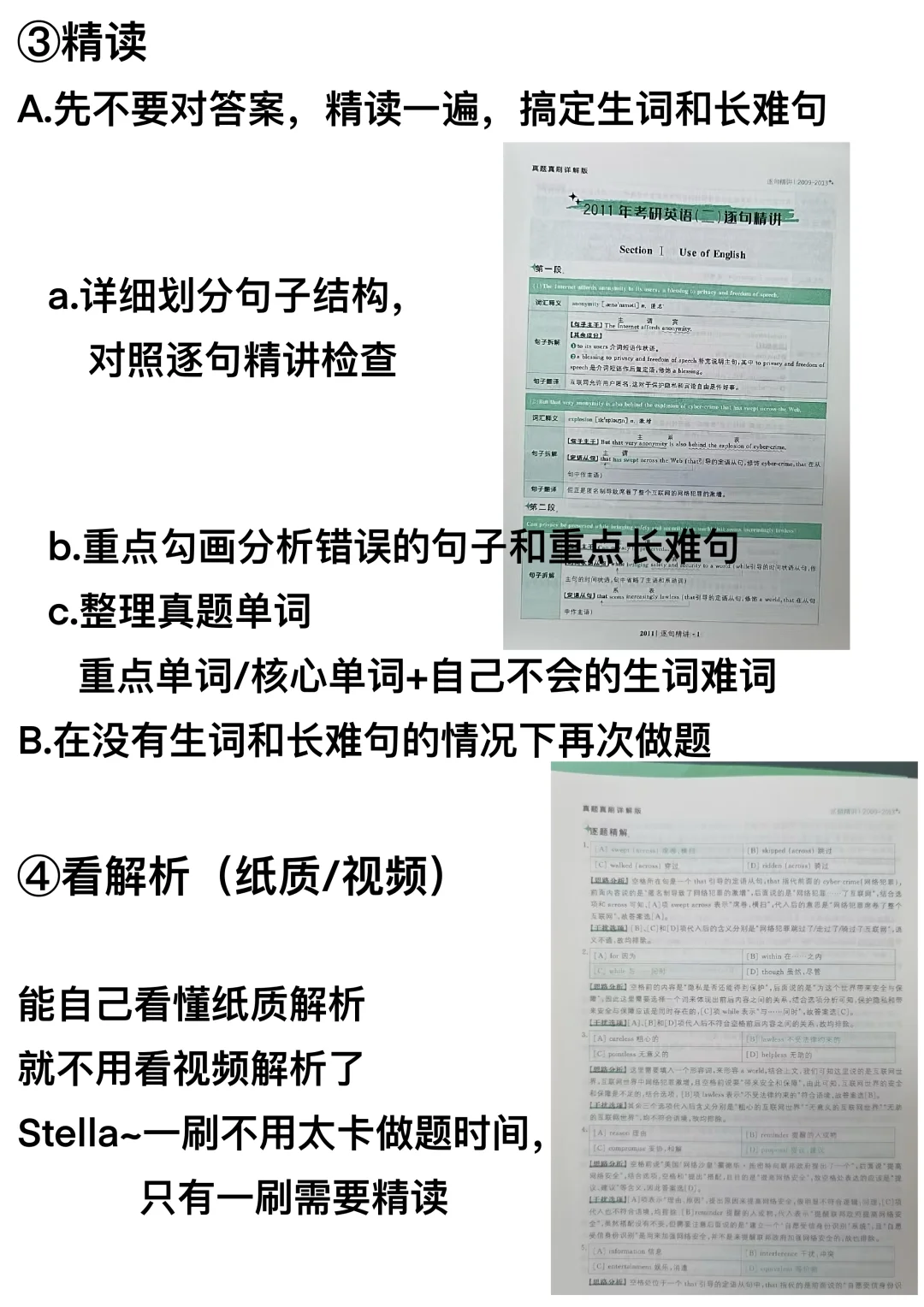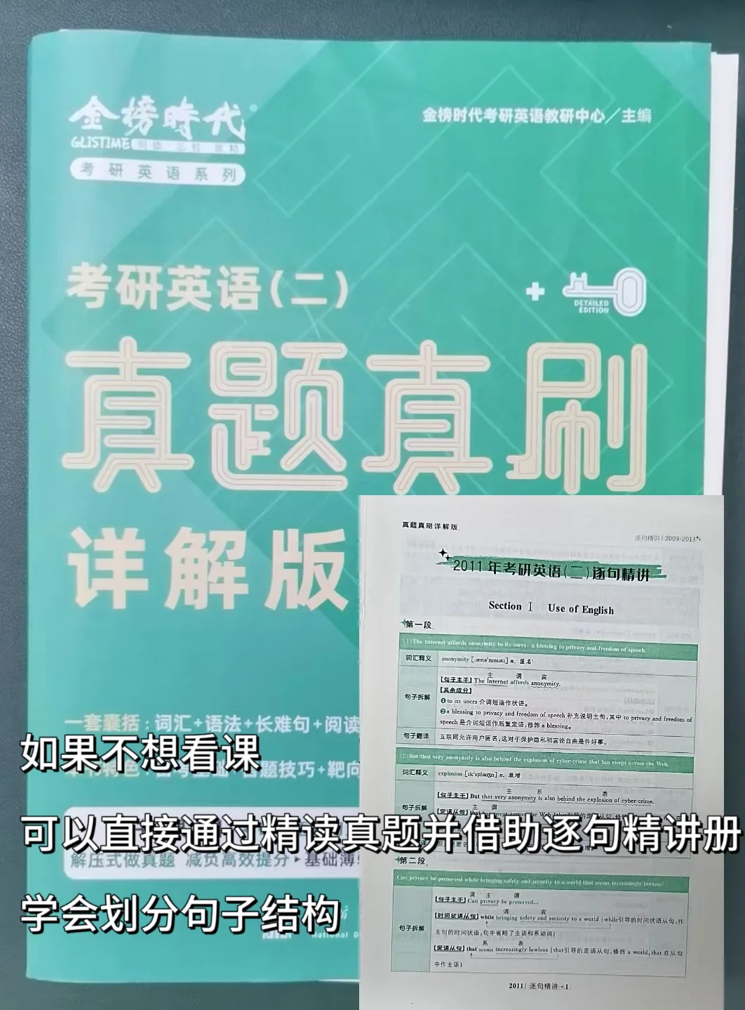 ✨ 《真题真刷详解版》的逐句精讲册可以带着大家手把手拆解句子,这很有用,如果有人不想看繁琐的课去学语法,那么可以通过精读和逐句精讲册学会拆解长难句