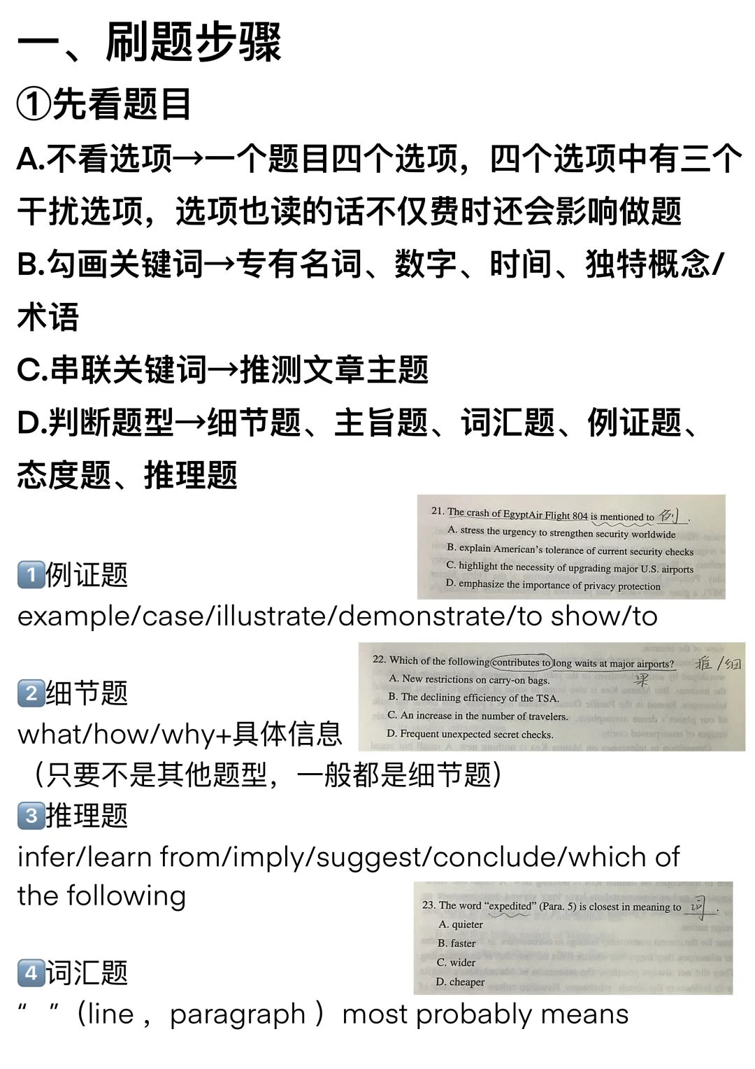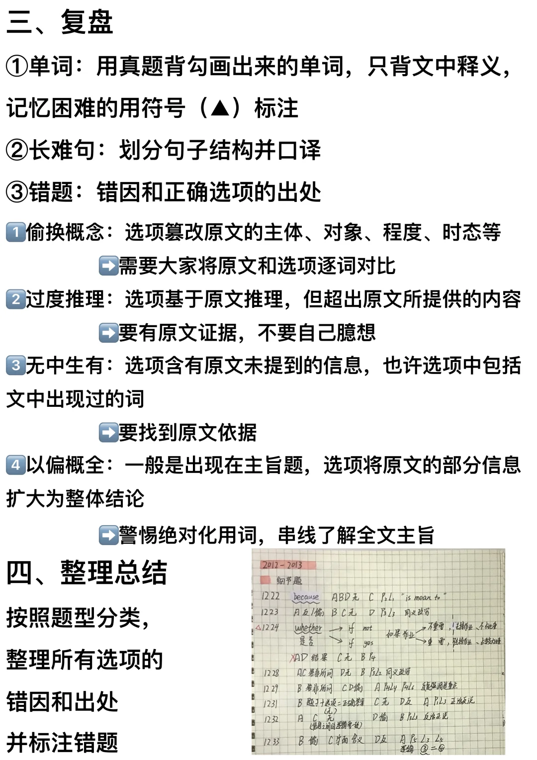 ③整理真题单词,在真题上划出单词,用便签纸记录单词释义,只记录文中释义(这样可以方便自己之后直接用真题背单词)