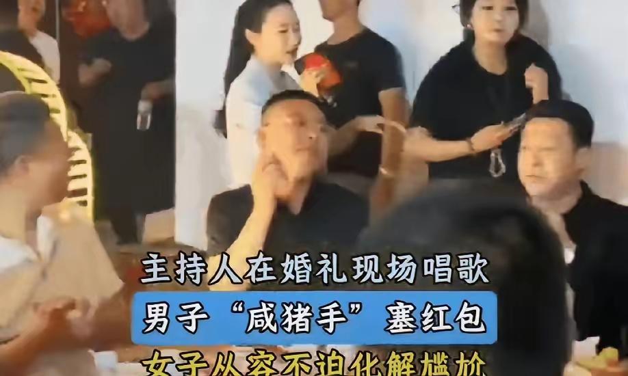 山东婚礼这男的也太离谱了!女主持唱歌呢,他从背后搂人还想把红包塞人胸口,幸好主持人事先有经验,一把抓住手、身子后仰,接着又唱又跳跟没事人似的。 别夸他“会热闹”,这根本就是借着婚礼耍流氓!网上有人说主持专业能忍,可凭啥敬业要成受气的理由?她后来也说“任务是控场不是砸场子”,可看她那熟练的躲法,指不定之前就遇上过类似事。 现在有些婚礼的“闹”早变味了,把动手动脚当幽默,拿低俗当下流。法律明着说这是性骚扰,真以为借着“喜事”就能胡来?热闹得有分寸,尊重才是真祝福。你要是遇到这种事,会当场翻脸还是先顾着场合忍一忍?