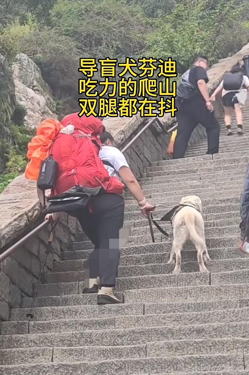 首先声明我没有看不起盲人的意思,我只是想问一下,一个盲人去爬泰山她能看到啥? 自己累个半死,导盲犬也累个半死,我觉得导盲犬不是这么用的吧。 我觉得这种行为,一点意义也没有,没有传递给我正能量,我只看到了一个盲人的无知和对导盲犬的残忍。请问,这个山非得爬吗?