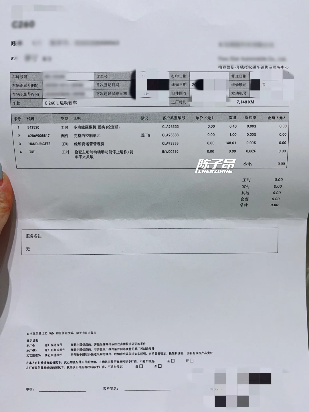 车型奔驰新C260L,车友投稿在马路上正常行驶突然出现故障码:🔺主动式紧急停车辅助系统暂时不可用 [向右R]当时是正常行驶路面那个故障码是40速度左右跳出来的,最开始4S店让车友把车子洗干净,尤其中网处,怀疑是不是有东西挡住摄像头干扰了,但是也没见好,后来又跳了一次! 于是车友去4S店排查,[石化R]第一次排查显示亮度不够,怀疑是不是前档的贴膜颜色太深影响了,后来排查了一个上午最后说前挡摄像机模块出问题了,[汗颜R]建议更换摄像机! ▫️申请配件时间:五天左右到。 ▫️更换这个模块的时间:一天多的时间,安装倒是还蛮快,主要是调教,听说4S试驾了两次。 [向右R]之前出现这个故障码遇到的问题都是系统版本故障,所以更新系统,或者是更换其他的模块以及检查感应雷达,这一次竟然是换摄像头总成! [红色心形R]换了以后到现在目前没有出现过故障码。 🔺所以分享给大家,如果奔驰有这个故障码的时候也可以看一下这里![向右R]多一个排查故障的解决办法!因为这个东西除了耐心还是耐心![doge] [耶R]以上为子昂分享,感谢大家点赞关注!先收藏,以后也许用得到!