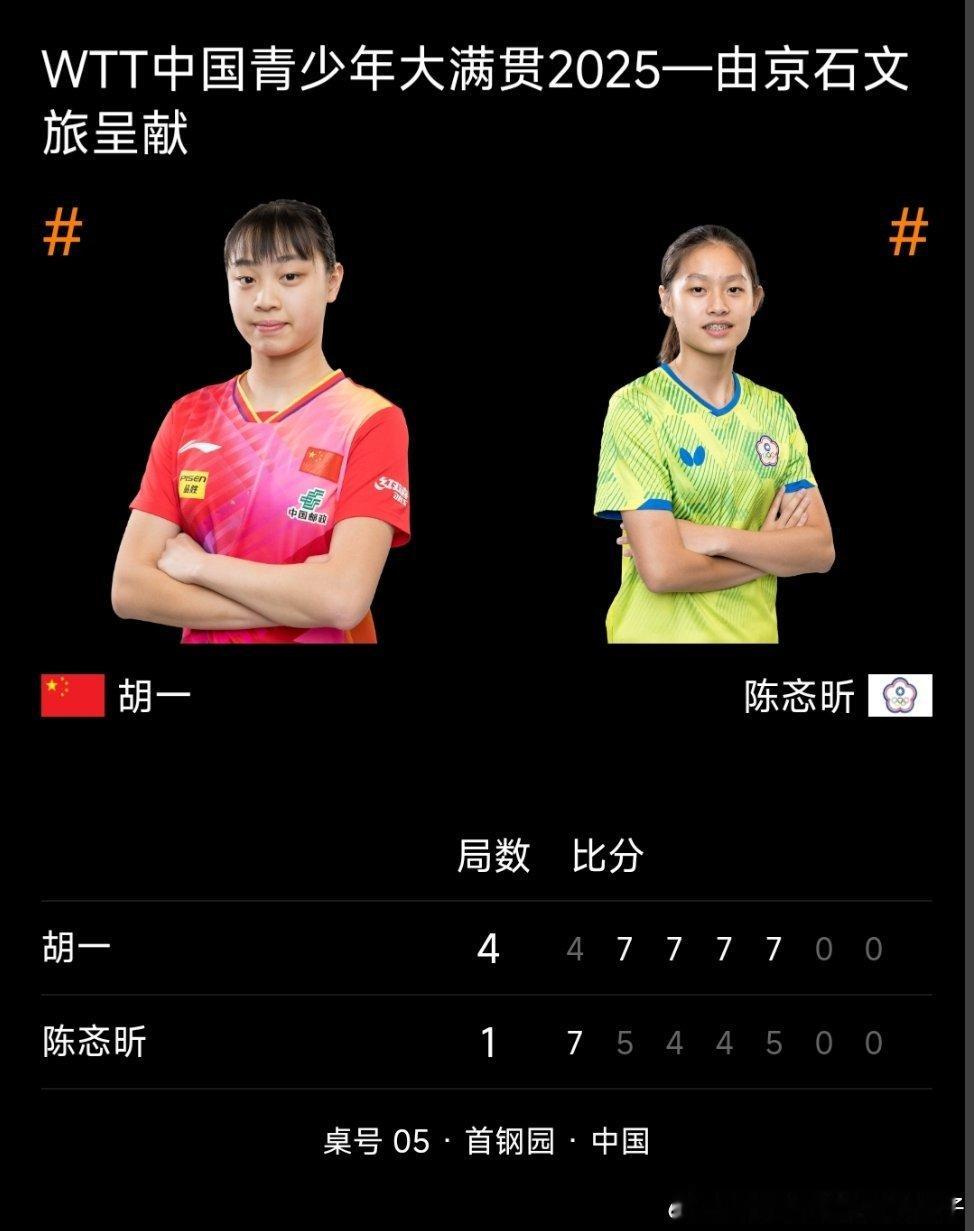 胡一4比1陈忞昕(-4,5,4,4,5)