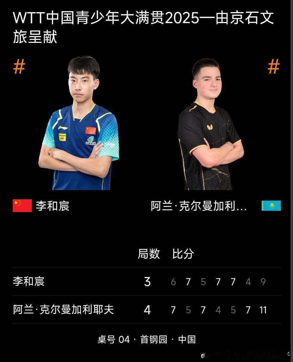 李和宸3比4库尔曼加利耶夫(-6,5,-5,4,5,-4,-9)