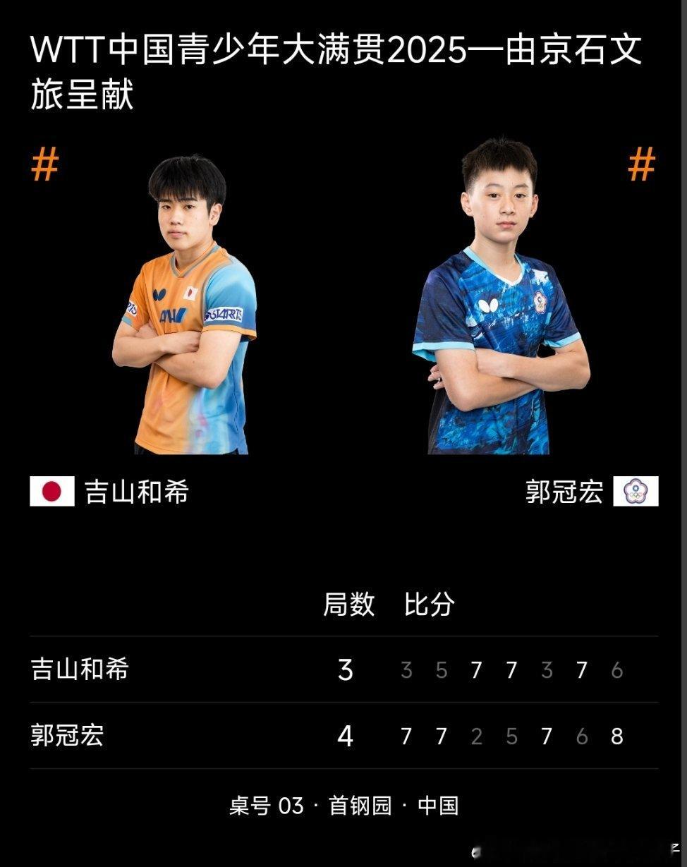 郭冠宏4比3吉山和希(3,5,-2,-5,3,-6,6)