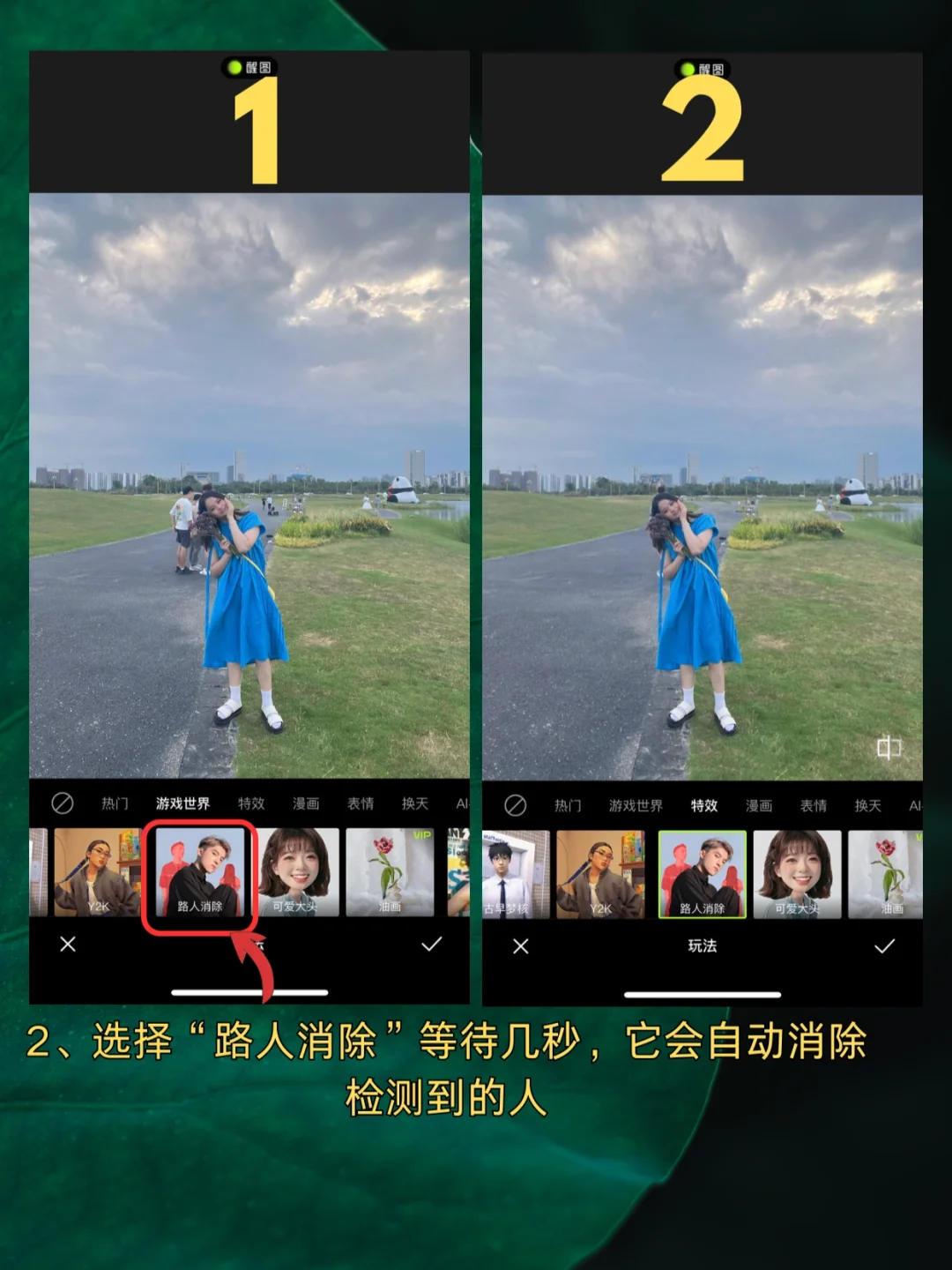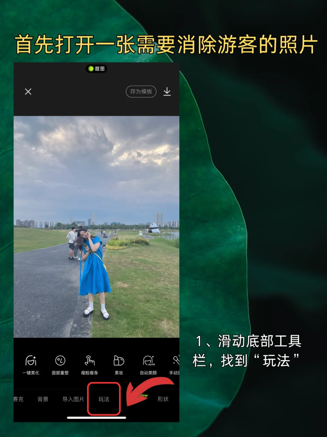 hello~我是甜瑜 今天来分享一期实操,醒图摄影后期人像,“消除路人”醒图是一款功能强大的手机修图软件,尤其在人像精修方面表现出色。消除路人也是很香的❤️ 📒方法如下⬇️ 1⃣️滑动底部工具栏,找到“玩法” 2⃣️选择“路人消除”等待几秒,它会自动消除检测到的人 3⃣️检测到的人就会自动消除,但是离得近的就会检测不到,或者环境原因会缺失一部分没消除的,这个时候就需要我们再手动消除一部分,放大画面,手动涂抹消除即可📒 喜欢的宝子👍点赞➕关注❤️收藏🌟鼓励鼓励我,后续持续更新嗷❤️